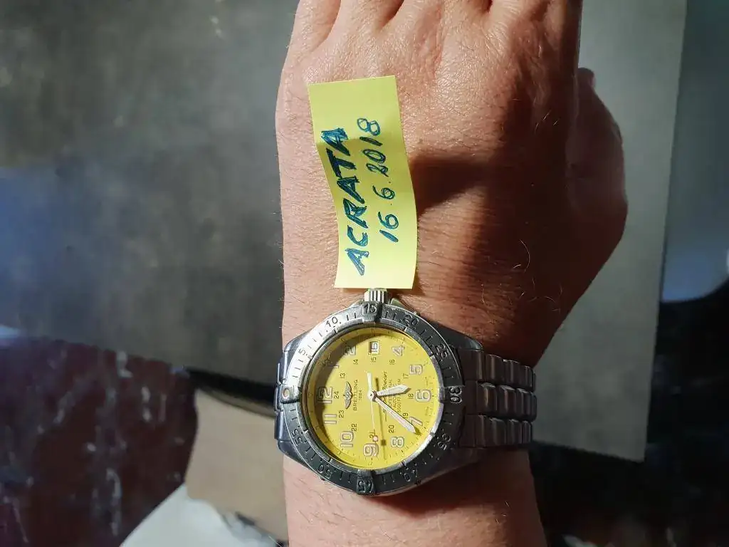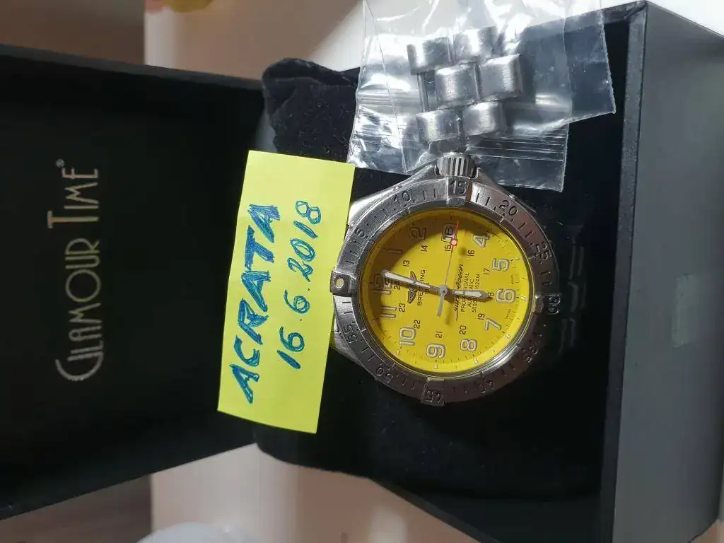 vendo este Breitling esfera amarilla, dificil de encontrar. Tiene un tamaño perfecto. Esta usado pero en correcto estado como puede verse. No quiero cambio alguno, solo cash. Los meticulosos que preguntan por las rallitas que se abstengan, es un reloj usado y en correcto estado, pero no nuevo. Doy preferencia a la entrega en persona si el comprador es de Barcelona. Y por ultimo, las fotos son las que salen, tampoco quiero que me molesten pidiendo mas fotos.