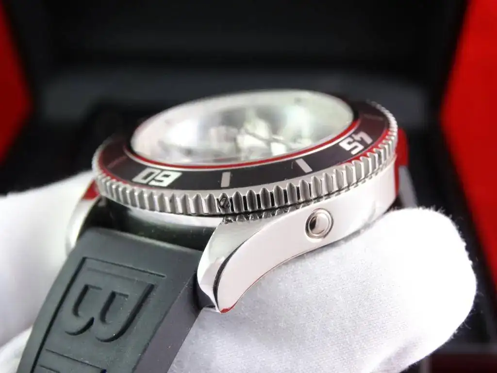 El reloj fue adquirido en 2010, y su estado, como se puede apreciar en las fotos, es excelente, con mínimas señales de uso. Incluye todo el set, formado por tarjeta de garantía, manuales, caja piel y sobre-caja de cartón. En su interior un calibre Breitling 17.