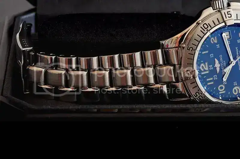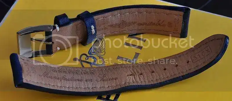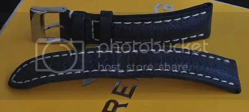 - Correa original Breitling azul en cuero, con su típico alomado, con ardillón, un par de puestas (sólo hay que fijarse en el color del hilo blanco del interior de la correa... que sigue siendo blanquísimo!