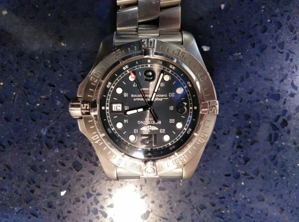 Este relojazo lleva una maquinaria automática con calibre Breitling 17.
