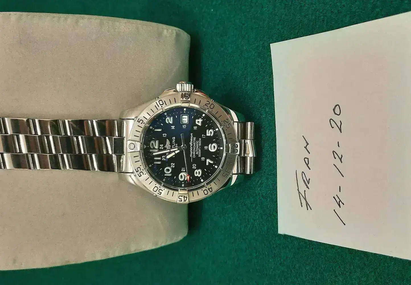 Vendo mi Breitling Superocean, se encuentra en perfecto estado de marcha, el cristal se encuentra impoluto (el tratamiento antireflejos está perfecto), adjunto correa de caucho y correa de cuero originales de Breitling.