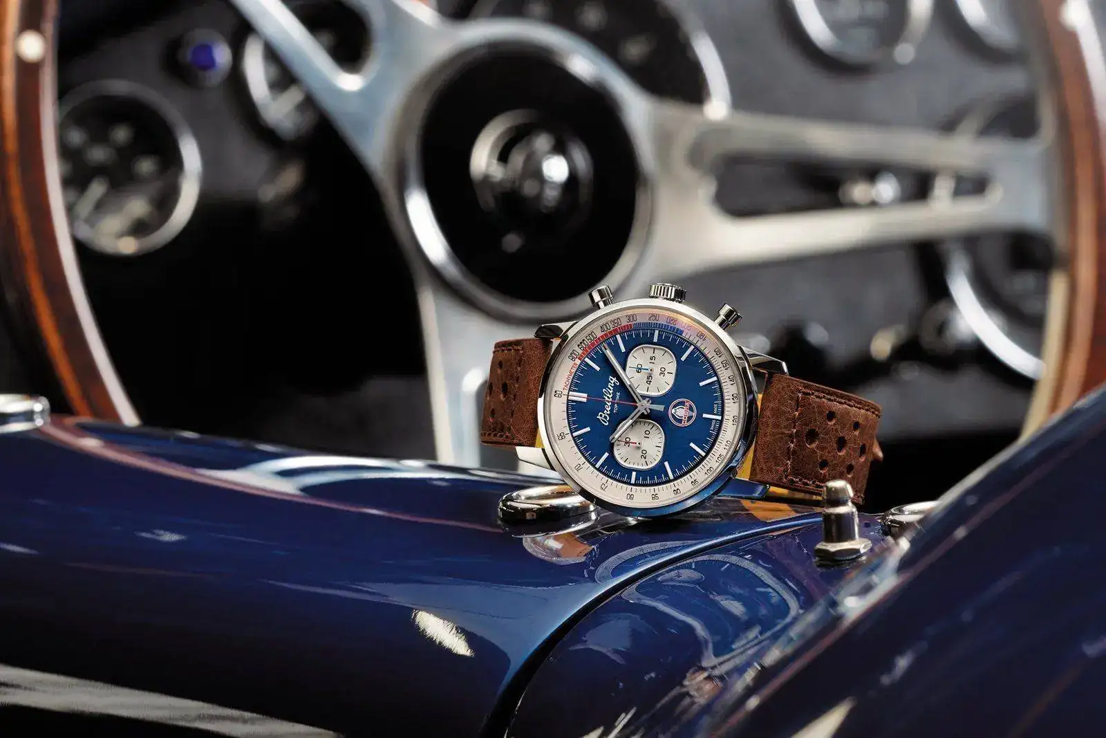 Cada fondo presenta el logo de los coches a los que están asociados (que yo creo que por este precio Breitling se lo podría haber currado un poco y hacer un grabado volumétrico en lugar de ese láser baratero, que le quita -mucho- caché).
