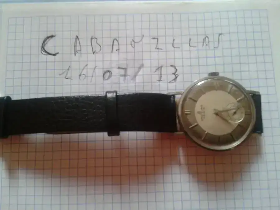 El tamaño del reloj son 37 mm,corona incluida. 18 mm entre asas,con una correa de piel de Hirsch usada,pero en buen estado.