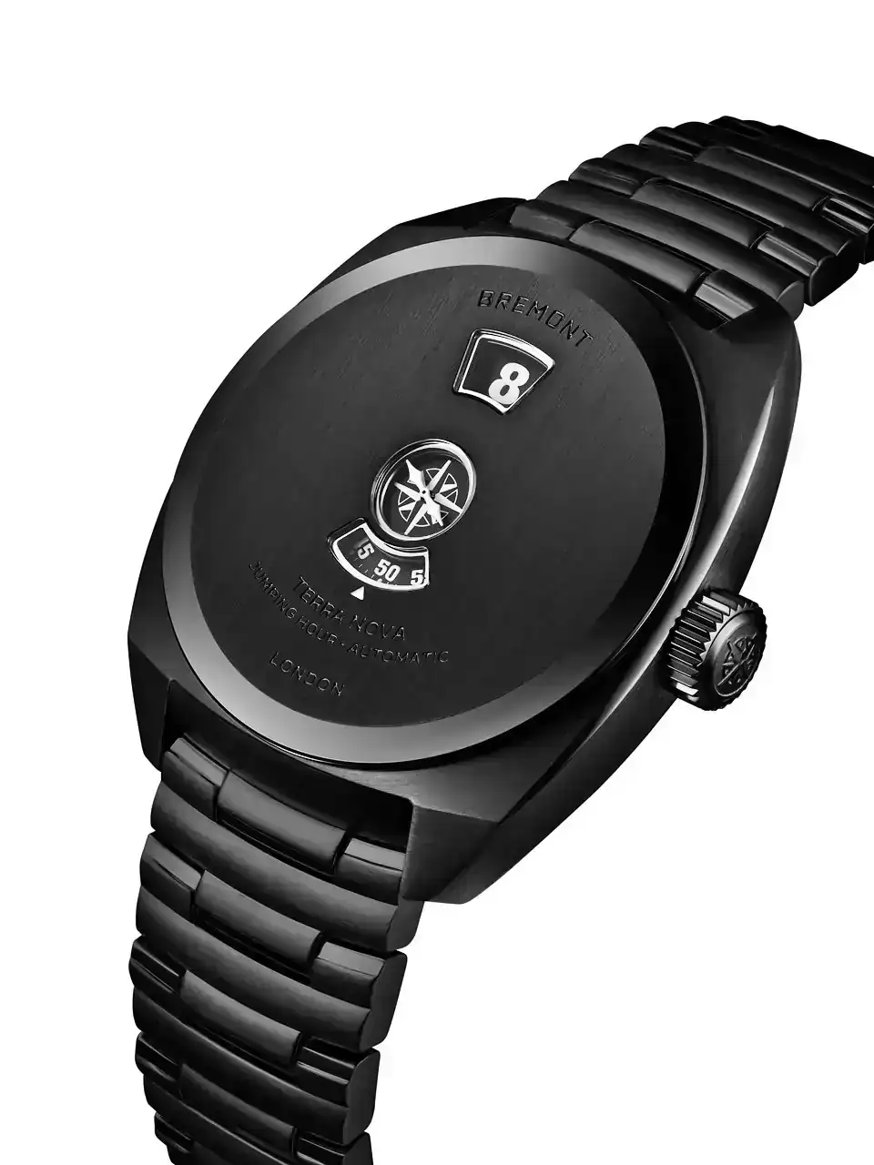 Presentada por primera vez en 2024, la colección Terra Nova reinterpreta el reloj de campaña desde una perspectiva británica moderna. Tras el éxito de ventas de la edición limitada de cobre-aluminio y bronce en abril de 2025 y la edición de acero 904L en octubre de 2025, la introducción de una edición DLC completamente negra transforma el Terra Nova 38 Jumping Hour en algo mucho más impactante: una declaración de intenciones