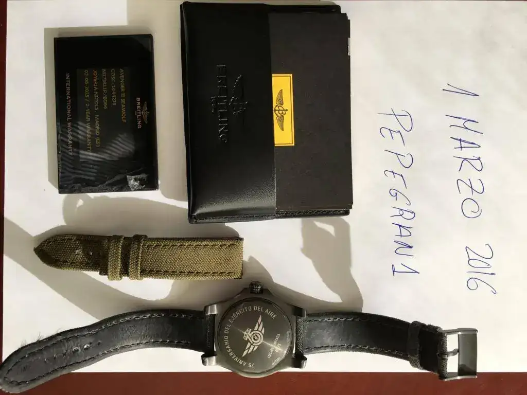 Pongo a la venta está Edición Especial de tan sólo 75 Unidades en conmemoración del 75 Aniversario del Ejército del Aire Español. Se trata de un Breitling Avenger II personalizado por Breitling para esta Edición Especial. Está en unas condiciones óptimas y no tiene nada reseñable aparte del corto uso. Incluyo la segunda correa ORIGINAL de Breitling en el precio.