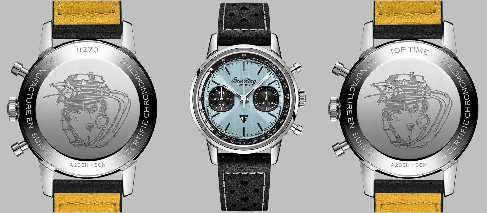 Con esta temática se anuncia la colaboración Top Time entre Breitling y la marca británica de motocicletas Triumph. Ahora, en su 120.º aniversario.