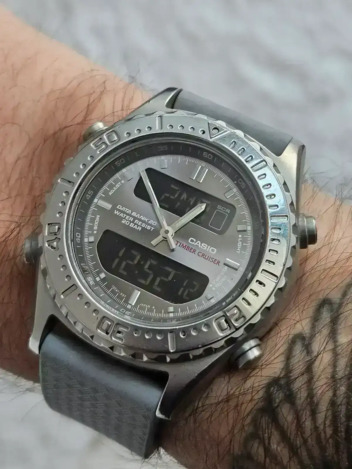 Mientras Citizen apostaba por disimular la tecnología, Casio hizo exactamente lo contrario. En varios modelos de sus líneas digitales y de la familia G-Shock de los años 90 y 2000, el panel solar aparece visible en el dial, claramente diferenciado, como un elemento de diseño en sí mismo. No hay intención de que parezca un reloj "normal": hay intención de que parezca un instrumento.Es una diferencia filosófica profunda, aunque realmente se debió a limitaciones tecnológicas, hoy en día los Though Solar no tienen paneles visibles.