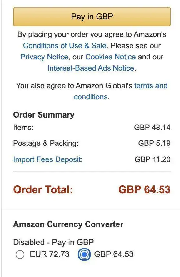 Ha habido un cambio: el Import Fees Deposit antes no aparecía al comprar en Amazon UK.
