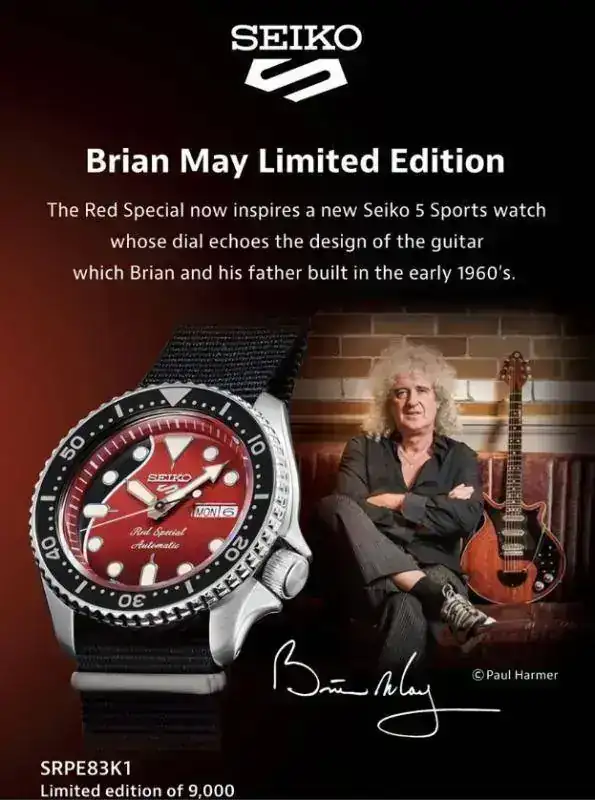 Os comparto esta noticia vista en FB que me ha parecido curiosa: serie limitada de los nuevos Seiko 5 inspirada en Brian May (Queen, mi grupo favorito.)