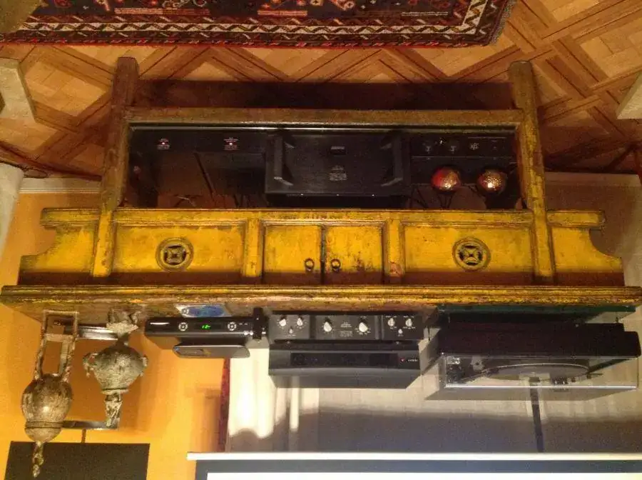 el salon y el dormitorio tienen la pared común .... y por muy bajo que ponga la tele para mi gusto...ella la escucha ....
