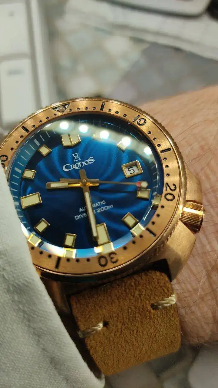 Yo aprendi a la mala eso amigo, el Willard de bronce le hice mil perrerias para forzar la patina, me gano el ansia, y ademas siempre he sido "culo inquieto", ahora que me hice con el SKX de bronce, recien llegado, lo dejaba en la ventana, solidamente asegurado, pues tengo un gato, "Cirilo", que es un cabroncete, y despues de varios dias el aire salitroso del puerto de Veracruz hizo lo suyo, y el resto de la patina ha aparecido con el uso, pero lo de forzar la patina con vapores de amoniaco, huevo cocido y demas recetas, paso.