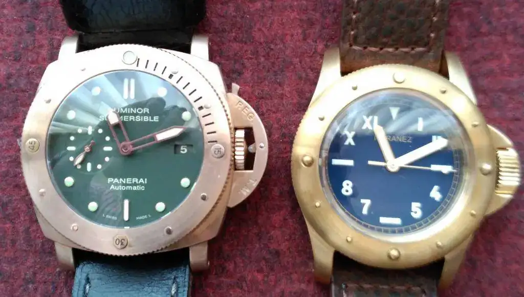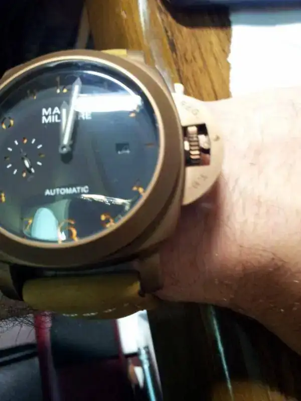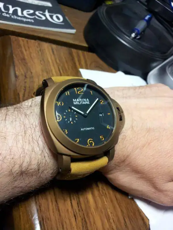 No creas.... Hombree.. el PAM porque es lo que es.. pero el de latón en vivo, es muy muy muy bonito. Y transmite calidad, es un buen reloj. Limpios creo que la estética de uno y otro es muy buena en ambos casos. Sin embargo, personalmente, creo que cuando empieza a crearse pátina, el bronce barre al latón... La pátina verdosa del bronce transmite una calidad que creo que la del latón (mas tirando a sucio) no
