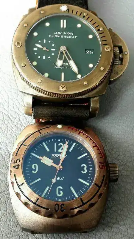 Sin disgustarme nada el bronceado del Vostok, me gusta más el del Panerai.