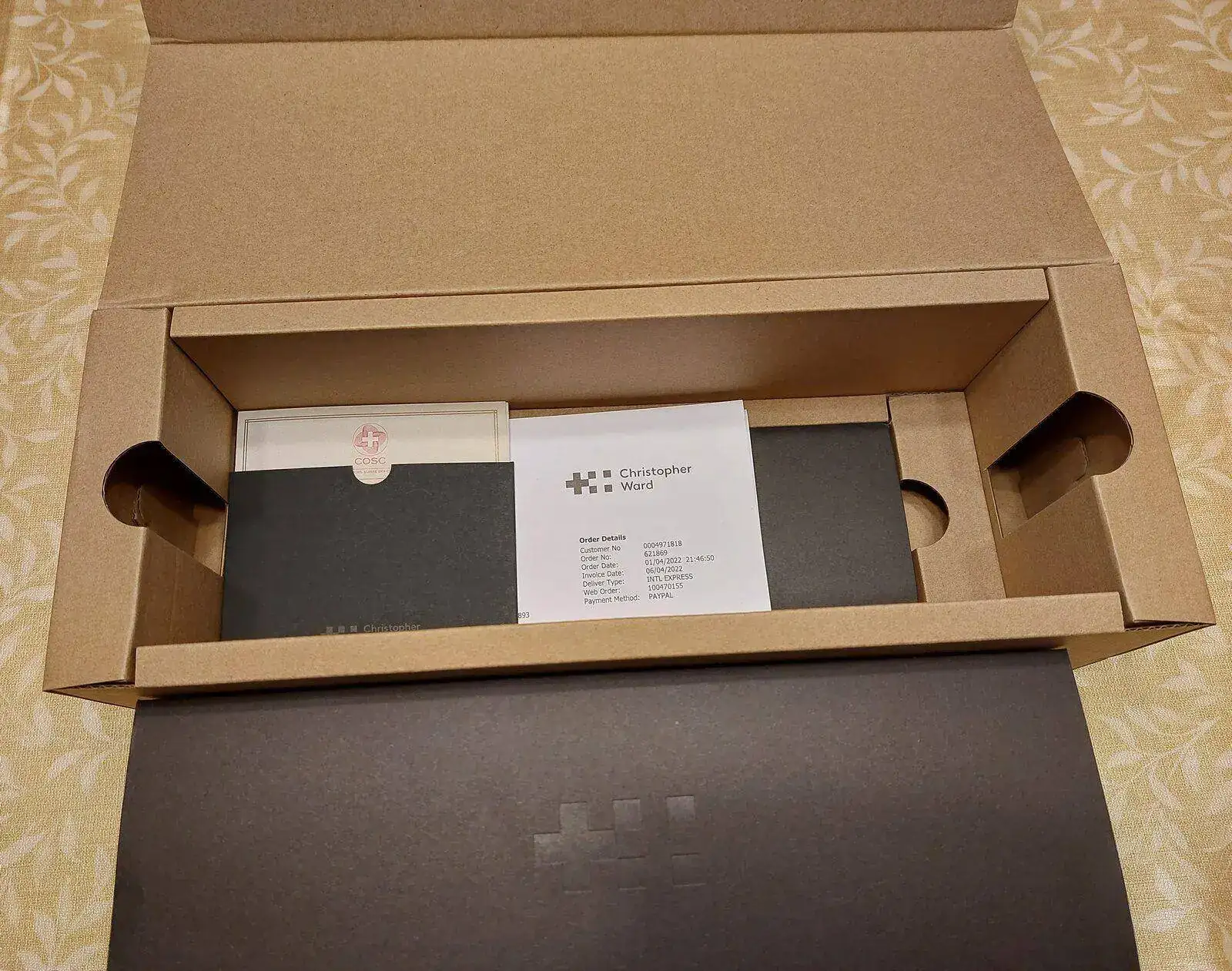 Al sacar la caja en el interior se encuentra la factura y el certificado cosc.