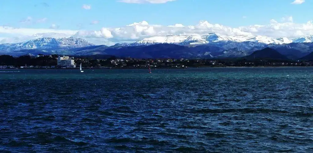 La nieve en las montañas y la bahía espectacular