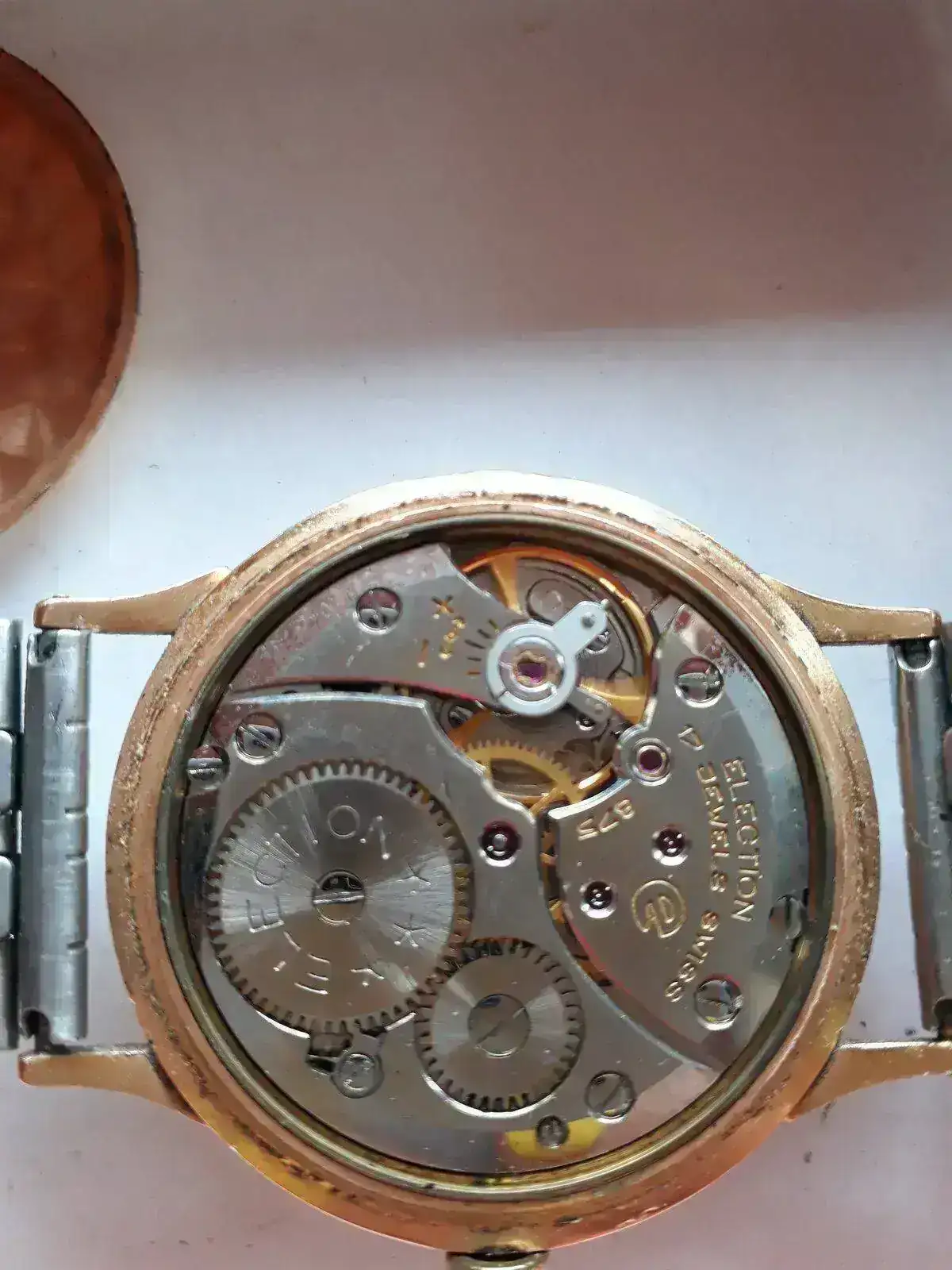 Con esa única foto sólo puedo decirte que parece de los años 1960, que el brazalete no pertenece a ese reloj y que la corona está muy gastada, lo que junto a la ausencia de la palabra "automatic" en la esfera o cuadrante indicaría una máquina de carga manual (confirmado en la página de Ranfft: Election nunca montó calibres automáticos), lo que hace pensar en un uso intensivo pero cuidadoso (se ve bastante entero el Election este). Su valor económico es inexistente más allá del interés que pueda suscitar en un coleccionista de relojes de esta marca.
