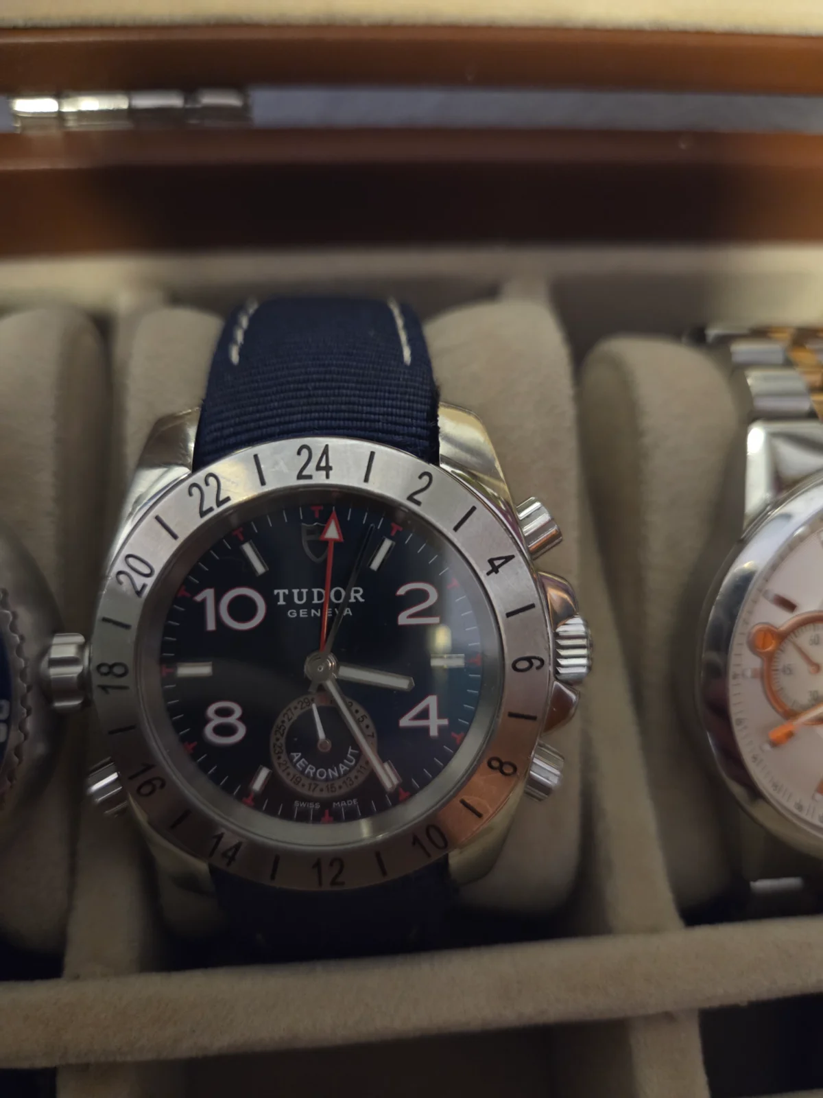 Se trata de un Tudor Aeronaut GMT que le adquirí a un forero hace algunos años. Se trata de reloj que, aunque me encanta, no le he dado casi uso y me planteo dar salida para dejar hueco en la caja, aunque no lo tengo claro todavía.