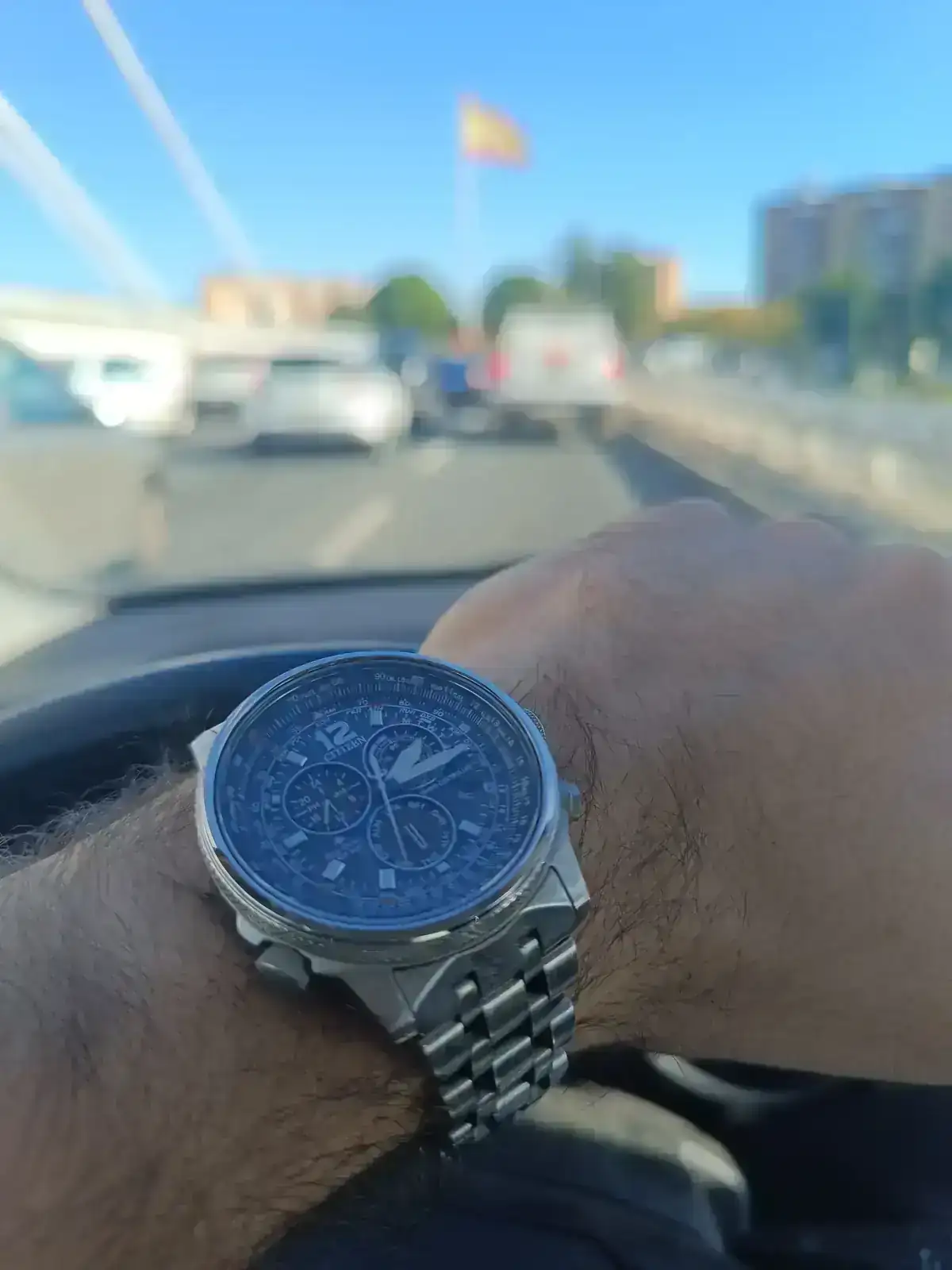 En cuanto a mi colección de relojes, de momento poca cosa: algunos relojes de cuarzo básicos: Lotus, Viceroy, etc., entre ellos a destacar uno que me regaló la empresa al cumplir 5 años (un Seiko sencillo de 38 mm con esfera blanca y correa de piel azul marino, con agujas y logo de la empresa en plateado). El año pasado, me regalaron mi primer reloj que no es de cuarzo tradicional, en este caso es un cuarzo solar: Citizen Radio Controlado CB5860-86E Eco-Drive. Aquí dejo algunas fotos: