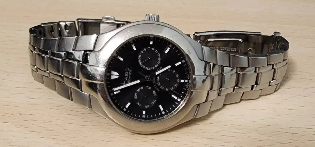 Mi Casio Edifice, desconozco el modelo, tiene conmigo al menos 2 decadas (visible en el uso), me lo relago mi novia de ese momento y actual esposa.😎😎😎