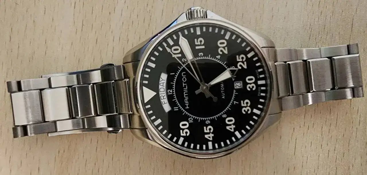 Hamilton Pilot Day Date. Tambien con el powermatic 80 y con exposicion de tapa trasera. Este seria mi reloj para "vestir", aunque se que es un piloto. Muy bonito, y la verdad no es tan pesado como mis otros automaticos.