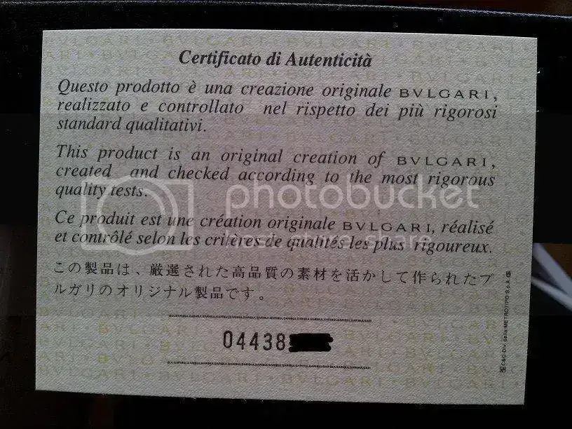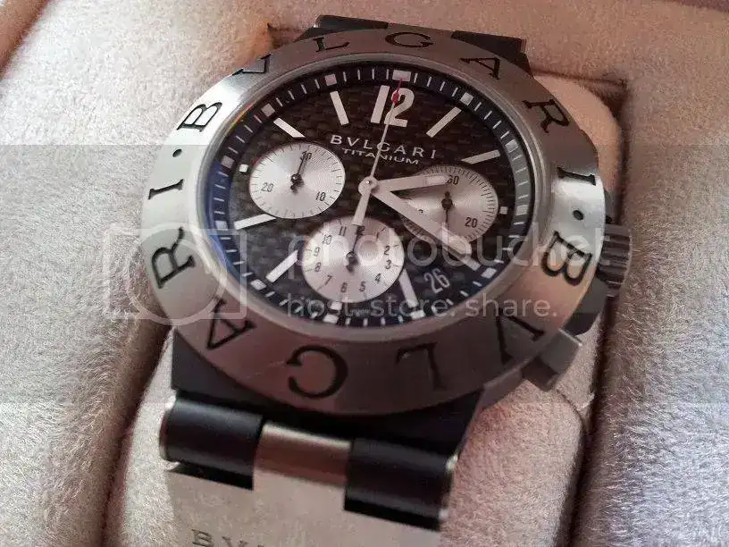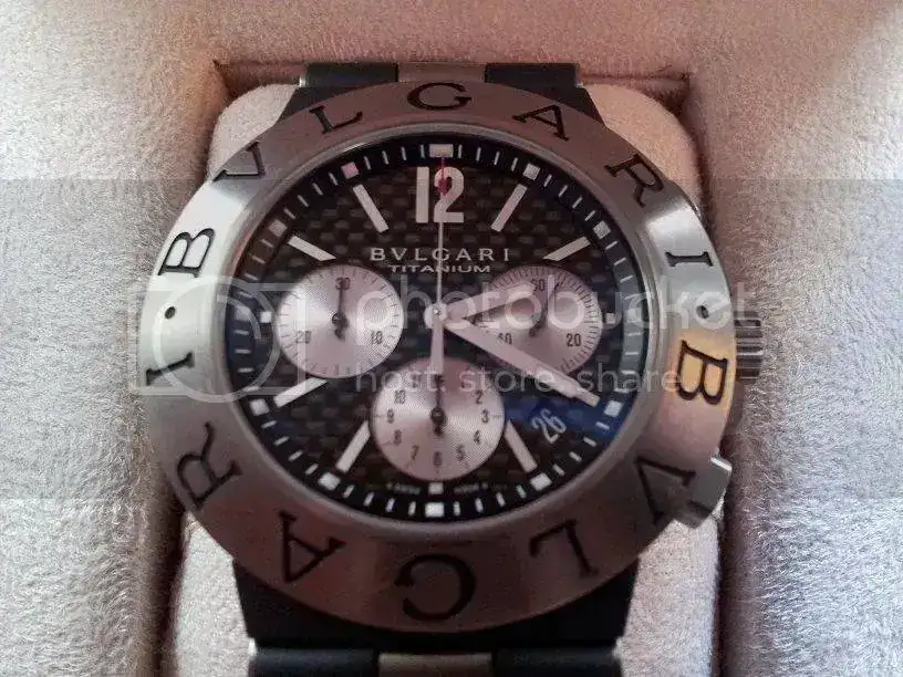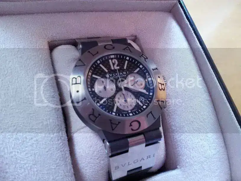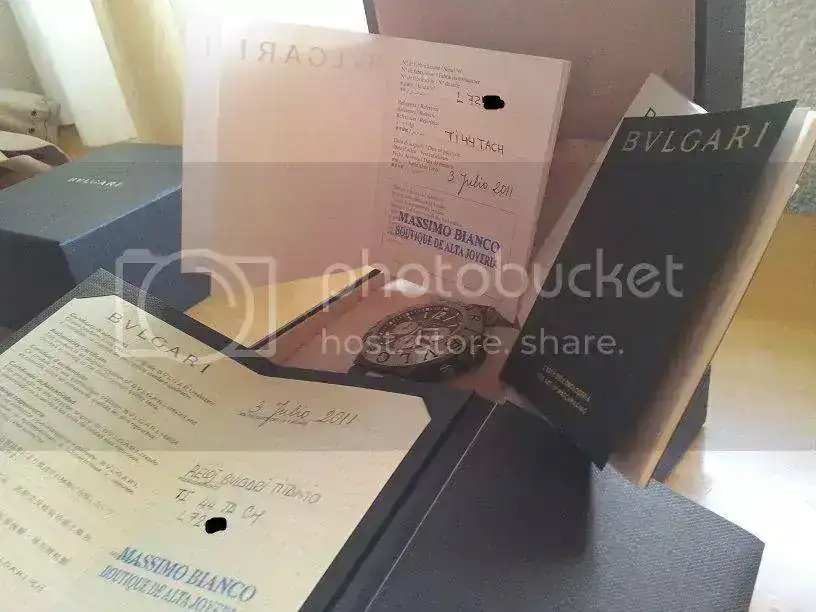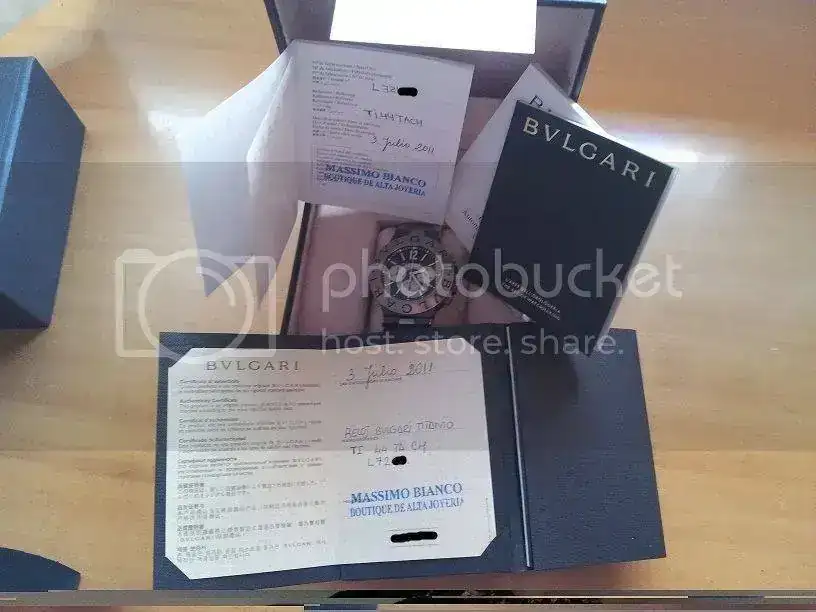 Sin tenerlo del todo claro y no sé por cuanto tiempo...Saco a la venta mi Bvlgari titanium chrono de 44mm (modelo ya descatalogado), ya que quiero adquirir una pieza de mayor envergadura. El reloj es de Julio del año 2011 y se encuentra en perfecto estado. Tan sólo presenta microrayas en el titanio, el reloj no tienes golpes ni nada parecido, como digo, tan sólo microrayas de un uso cuidado y moderado. El reloj es comodísimo de llevar, el peso total es aproximadamente de 92 gramos. Se entrega con toda la documentación compuesta por cajas exterior e interior de piel, libretos, tarjetas, certificados, es decir, todo, incluso conservo el ticket de compra, que aunque no aparezca en las fotos, también lo entrego. En las fotos he tapado los números por seguridad.