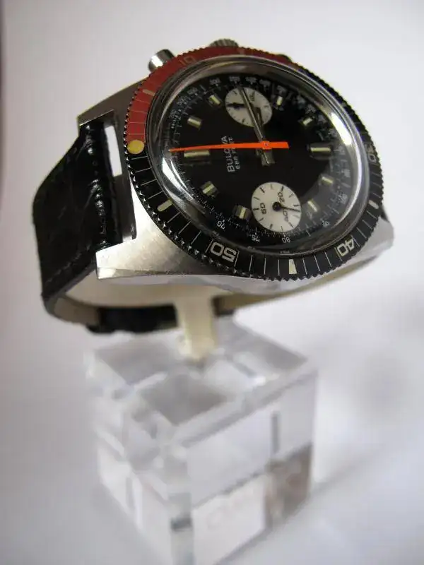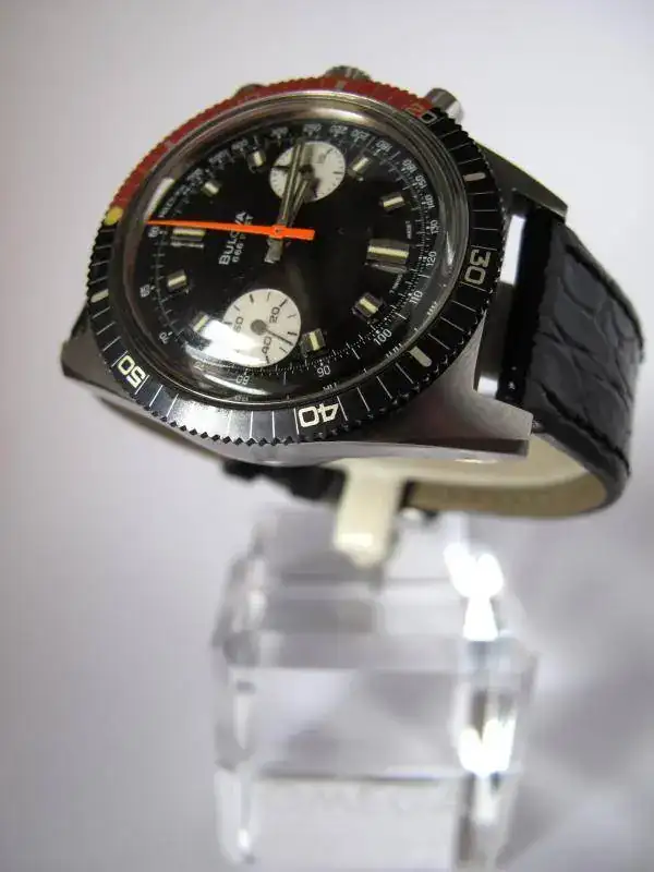 Impecable Bulova Cronometro Diver de los años 70. Lleva el movimiento Bulova 14EB que no es más, ni menos, que un VALJOUX 7733. Caja 38x47 mm sin contar corona.