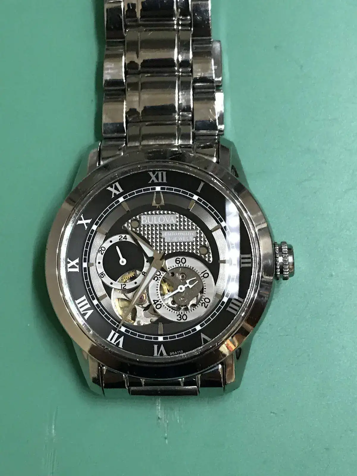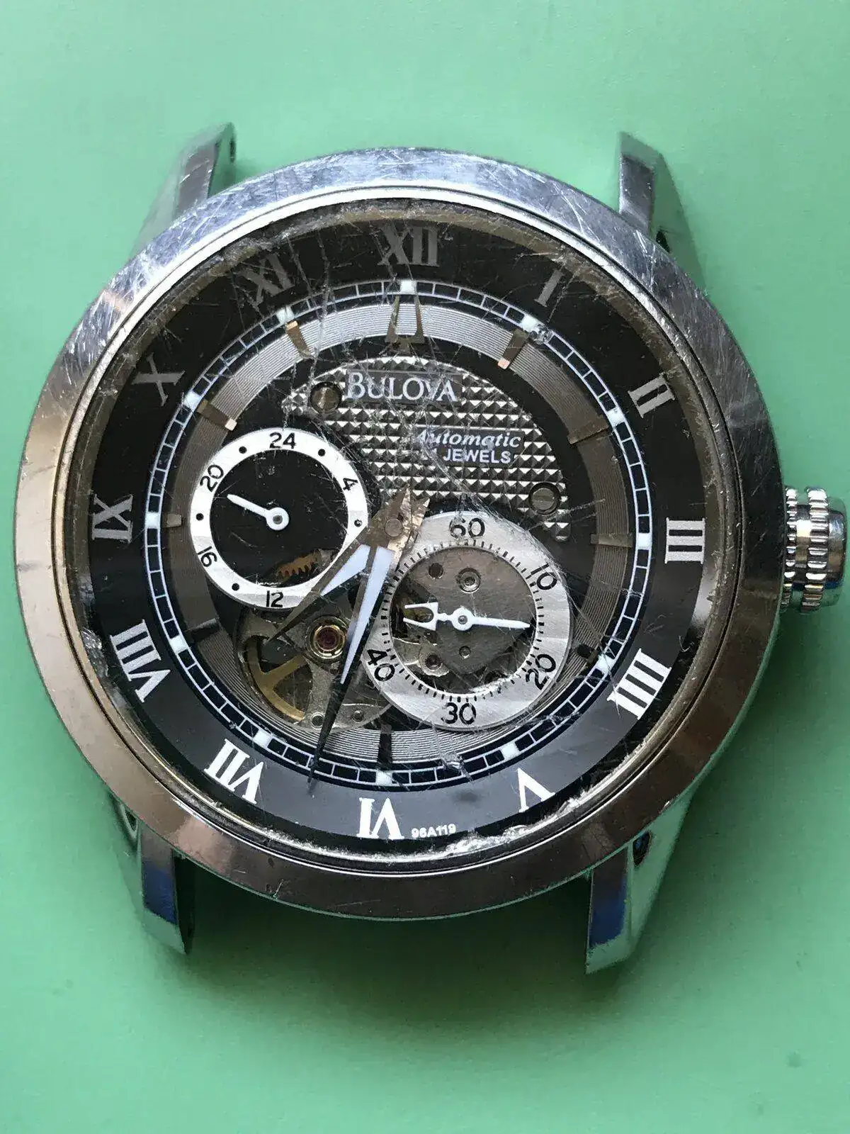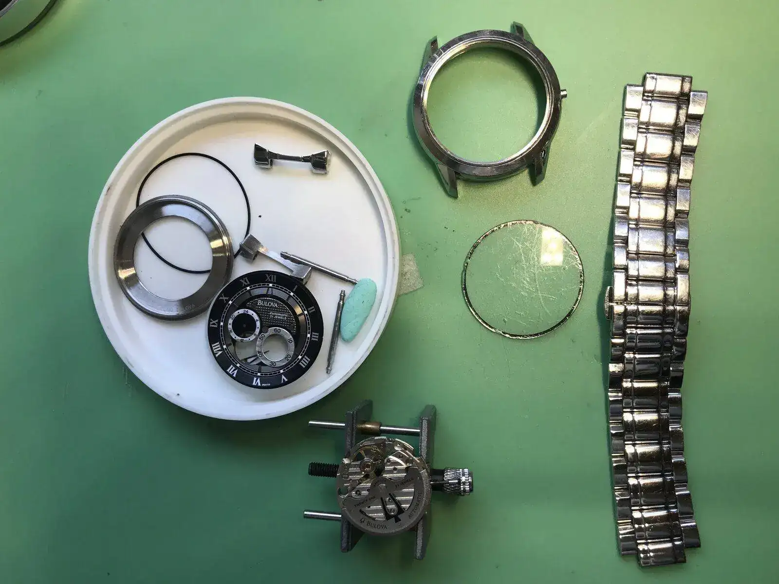 Buenas noches hace poco adquiri un bulova 96A119 en la bahia casi para restaurar ya que estaba de pena, no me costo muy caro pero bueno ya vereis el resultado y la verdad me entretiene mucho, aunque os aconsejo que lo que compreis os asegureis antes, las fotos engañan, parecia que solo tenia un cambio de cristal pero el armis estaba de pena, monta un movimiento miyota 82S7, el cual tambiem he desmontado y aceitado, espero que os guste,