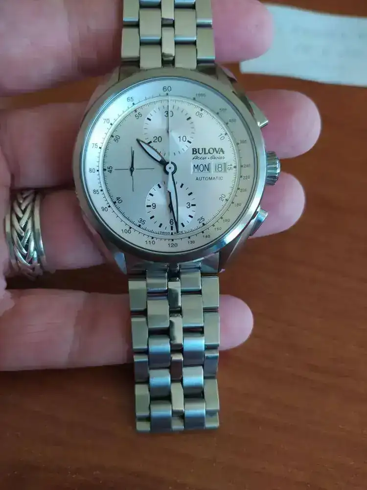Saludos. Vendo o cambio este relojazo en magnífico estado, procedente de un cambio. Su funcionamiento es muy bueno y salvo algún lleve pelillo, su apariencia también es muy buena. Lleva un Sellita SW500, lo mismo que el 7750. La esfera plateada es preciosa y su contenido tamaño, 42,5 mm, hace de él un reloj muy muy cómodo. Para cambio, automáticos calibre suizo. Davosa Ternos, por ejemplo. Tentadme.