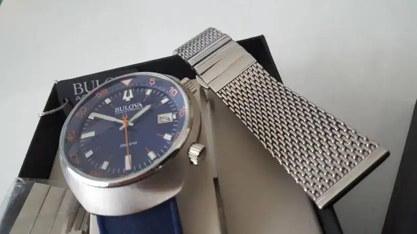Vendo este magnífico reloj marca Bulova en muy buen estado. Está completo e incluye la correa que lleva en las fotos. Solamente tiene un pequeño pelo en el pulido a espejo de un lateral de la caja.