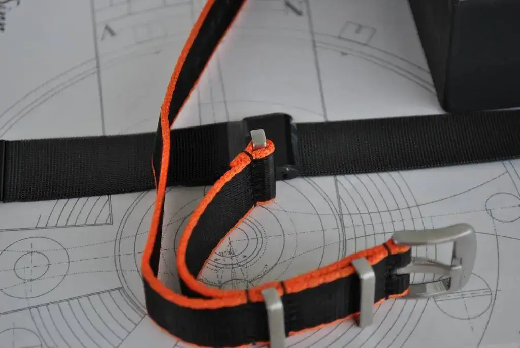 Brazalete: NATO BluShark negra y naranja . Milanesa PVD negra