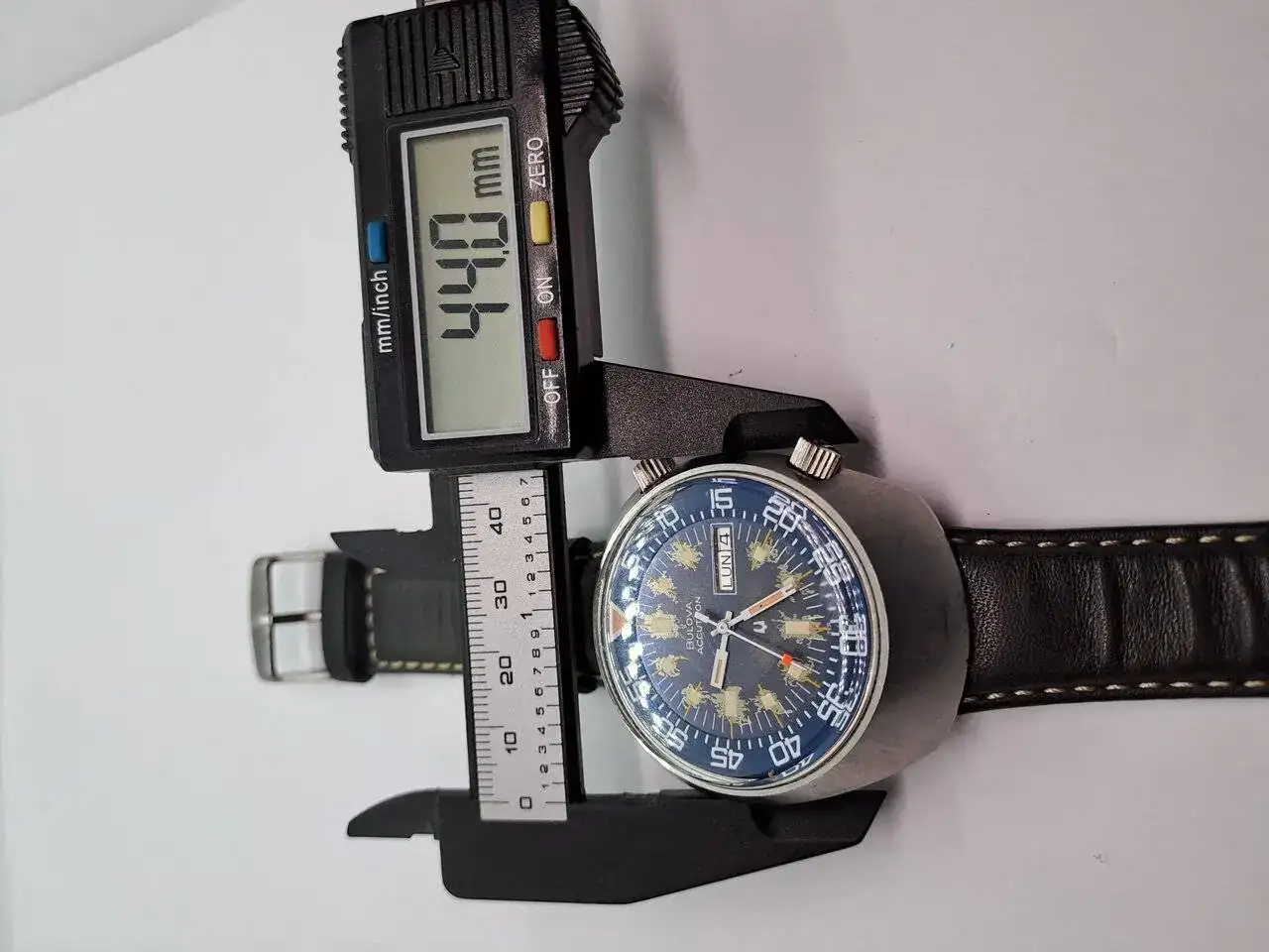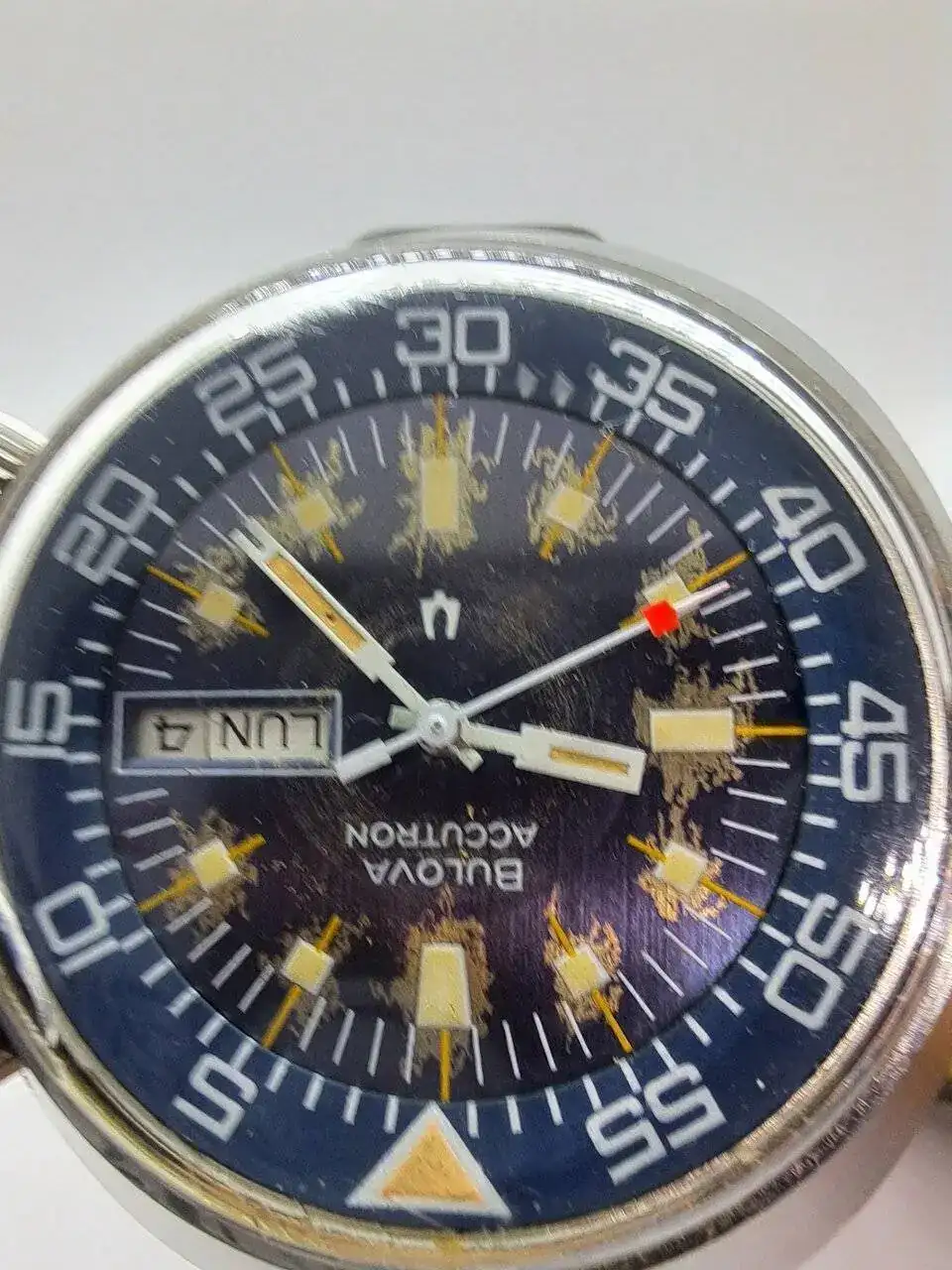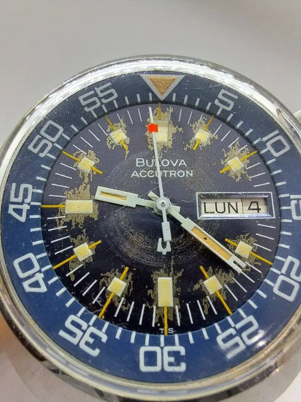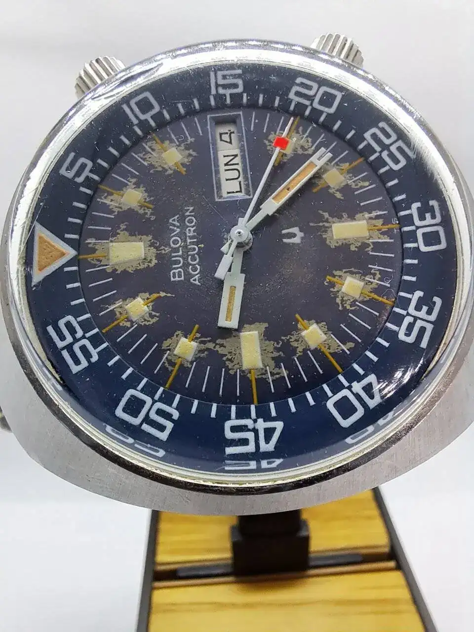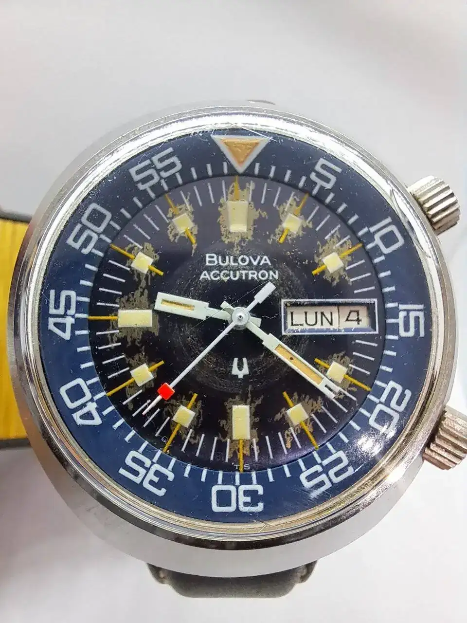 Se trata del Bulova Accutron Lobster, fijaros bien en su esfera, es expectacular y sus dimensiones no pasarán desapercibidas, es un reloj de los 70th y por supuesto funciona todo perfectamente.