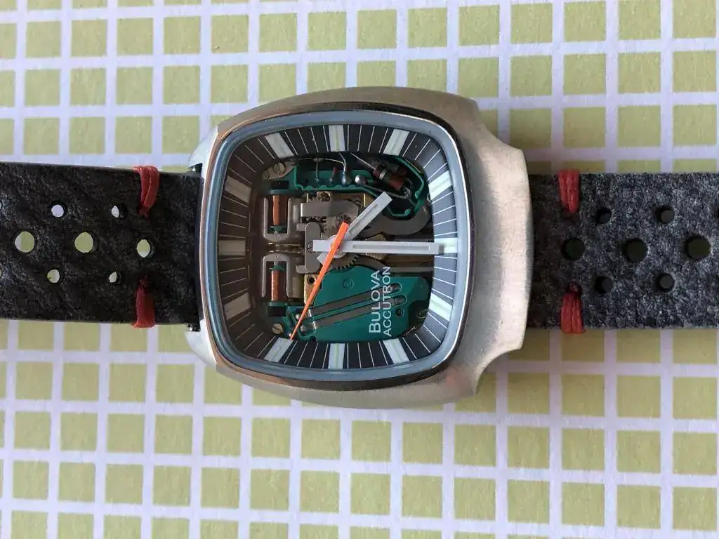 Al final el reloj escogido ha sido un Bulova Accutron Spaceview 100th anniversary. Lo encontre en chrono24 a un vendedor privado de Holanda. Con caja, papeles y en un estado magnifico. Muchísima suerte de haber dado con este vendedor, ya que hubo unos problemas con las direcciones del paquete, y él siempre contestó y se preocupo por intentarlo solucionar. En cambio, Chrono24 después de haberles enviado 3 correos para ver si podían echarnos una mano con le cambio de dirección, no tuve respuesta. Muy mal por su parte. He quedado bastante descontento, todo lo contrario con el vendedor privado.