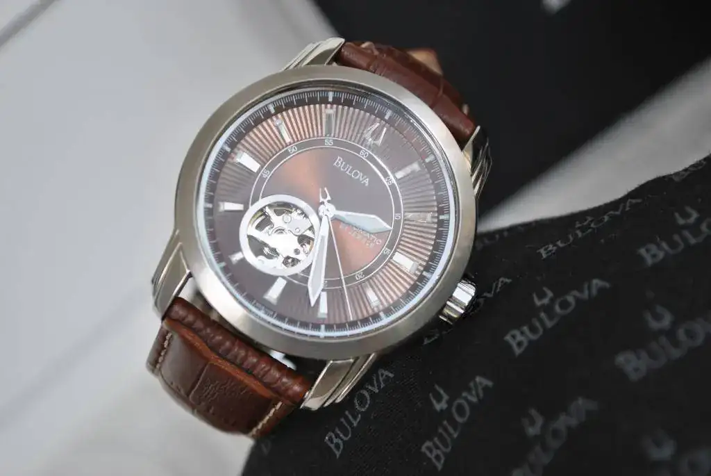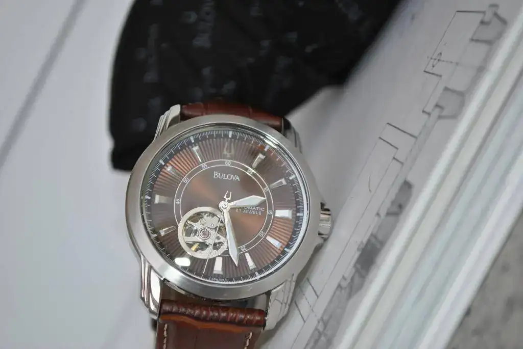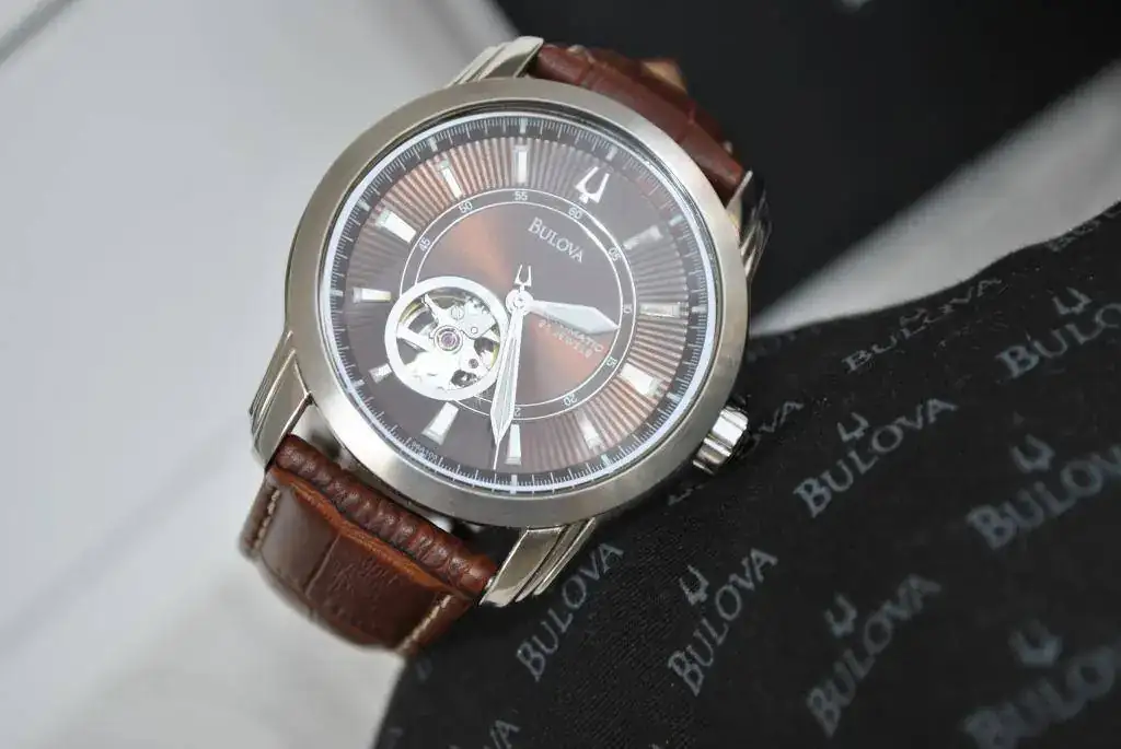 Vendo un precioso Bulova automático Open Heart. Tiene una esfera muy bonita, de un color marrón cautivador. Su pequeña ventanita para ver el corazón del reloj, le dá un toque muy especial. Fondo roscado visto.
