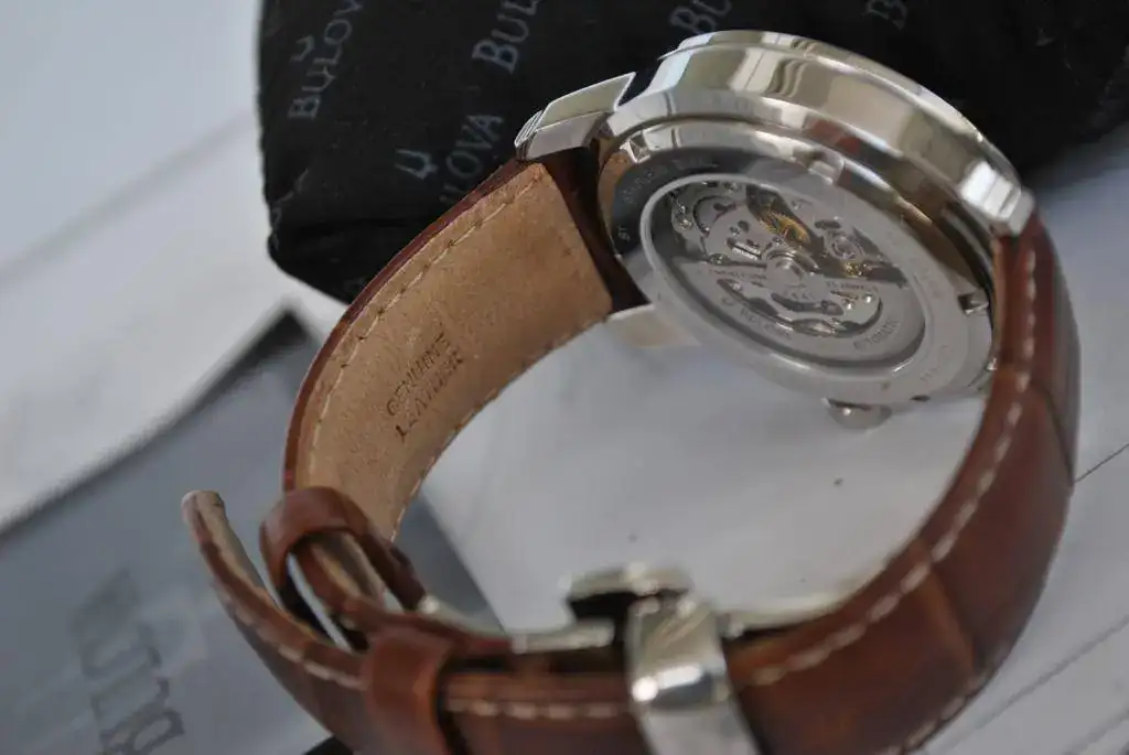 Brazalete: Correa de piel autentica original BULOVA con cierre mariposa.