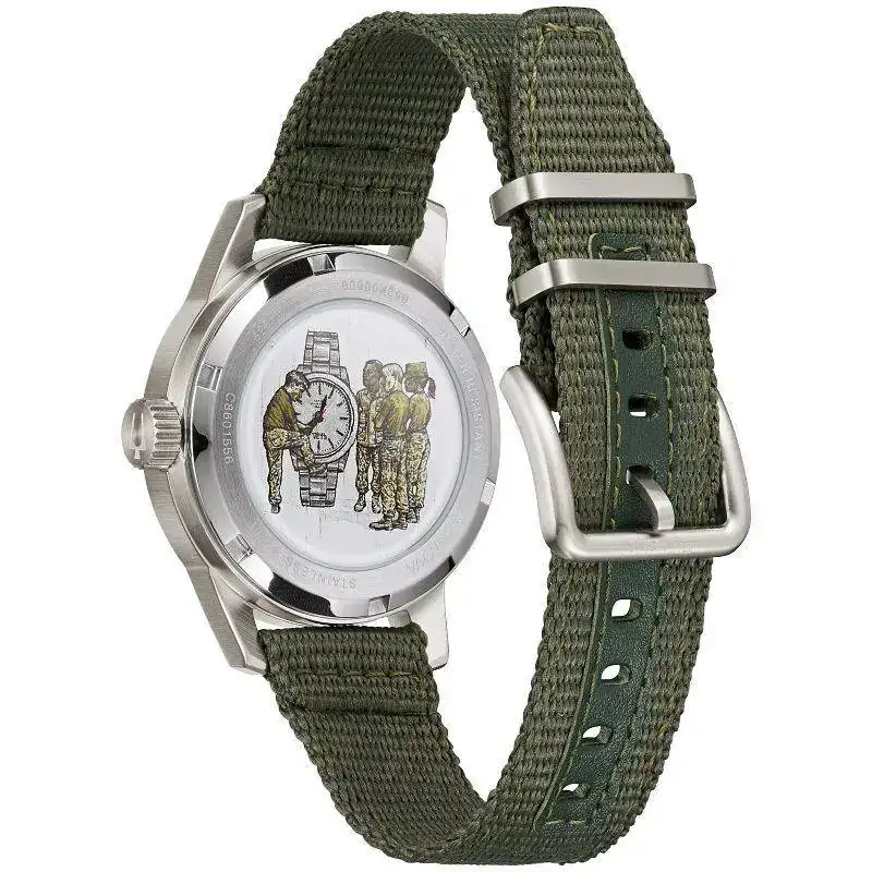 Es una reedición de un reloj militar americano, automático y de una medida muy contenida, 38.5mm (o 38mm no recuerdo bien)