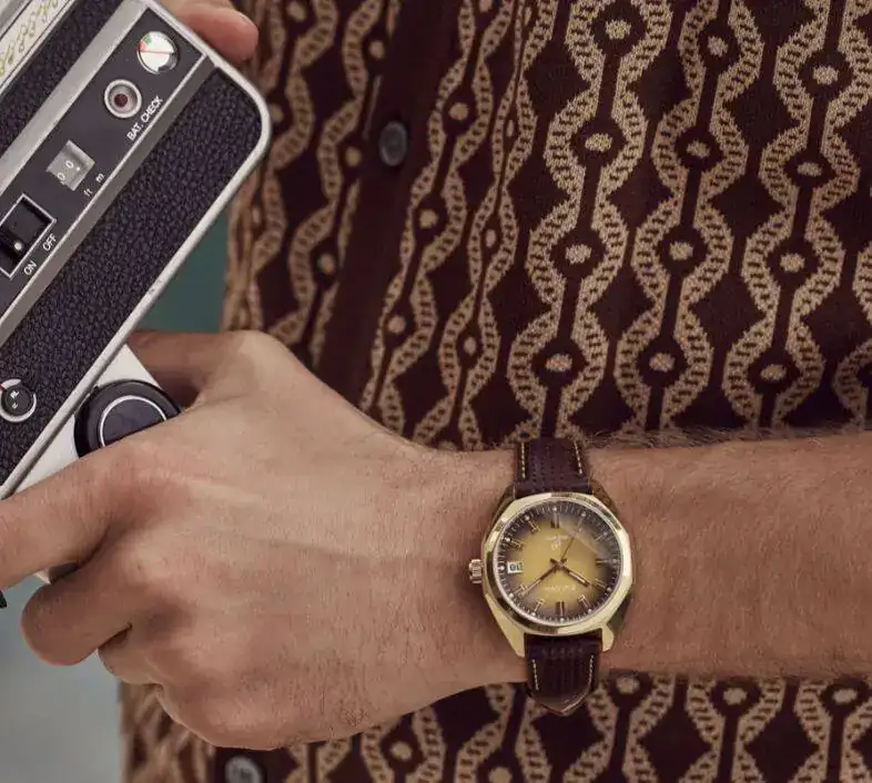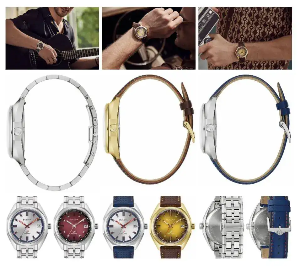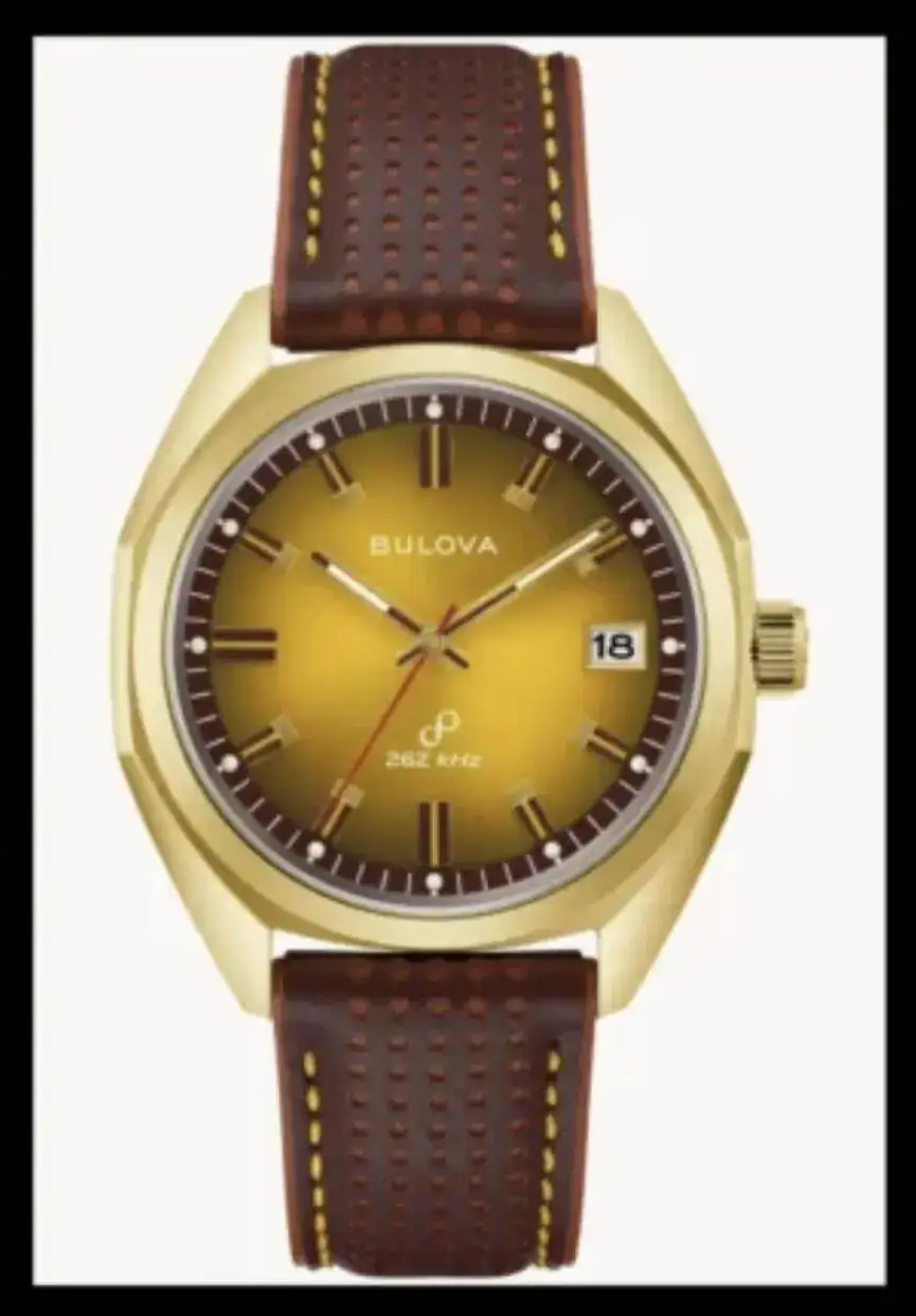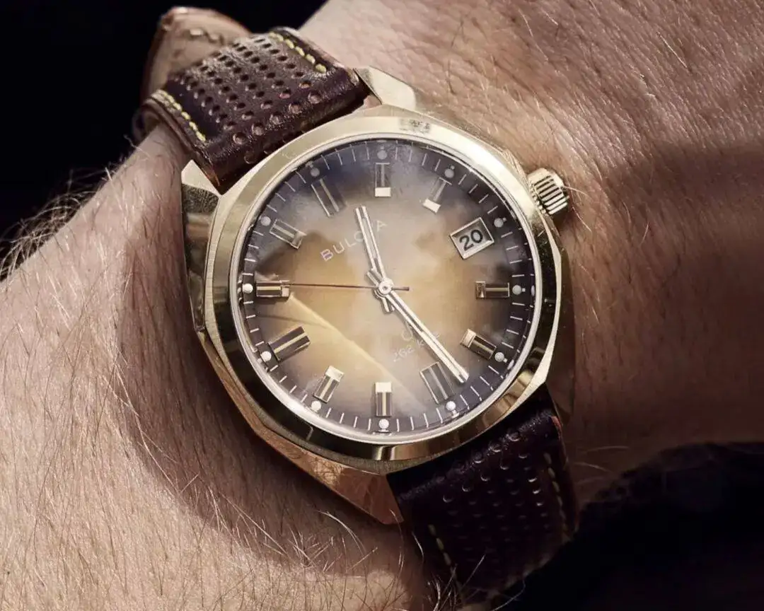 Nuevo Bulova Jet Star conserva muchos de los elementos de diseño del original de 1973, incluidas las agujas, los marcadores y brazalete.