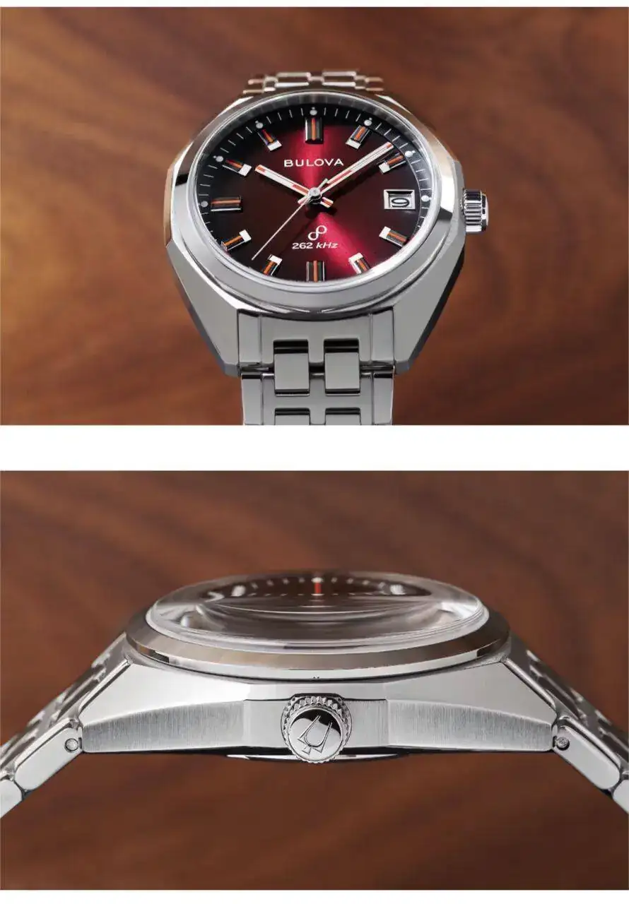 El movimiento es el calibre de cuarzo de alta precisión de cuarzo japonés Bulova. Frecuencia de 262 kHz para una precisión dentro de +/- 5 segundos al mes acompañada de un segundero de barrido suave que late 16 veces por segundo.