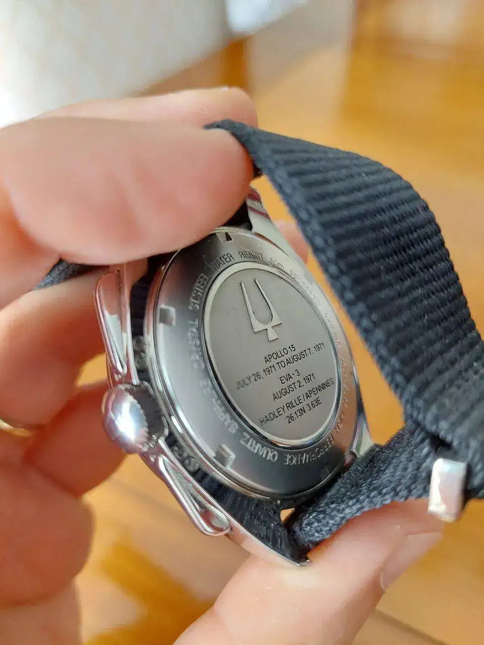Es la versión en acero cepillado al espejo, sin fechador y con el logo de la marca clásico, para mí, la versión más bonita. Viene con una "semi-nato" textil de gran calidad que se ajusta perfectamente a muñecas pequeñas como la mía. Incluyo a mayores una "NASA" no original. Está en un estado excelente, aunque es imposible que no lleve micropelillos debido al pulido. Dotación completa.