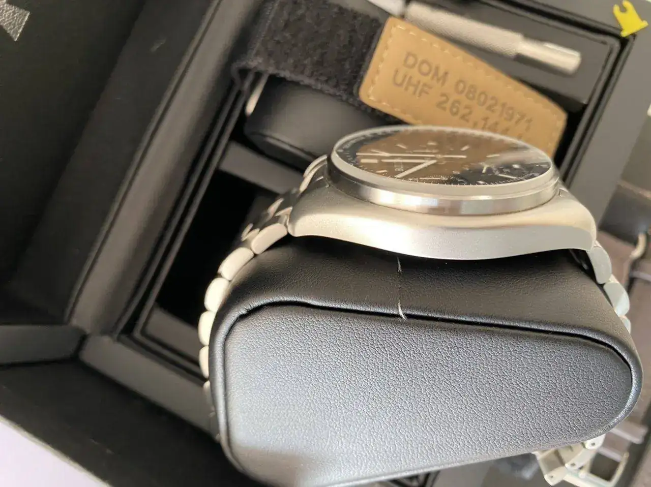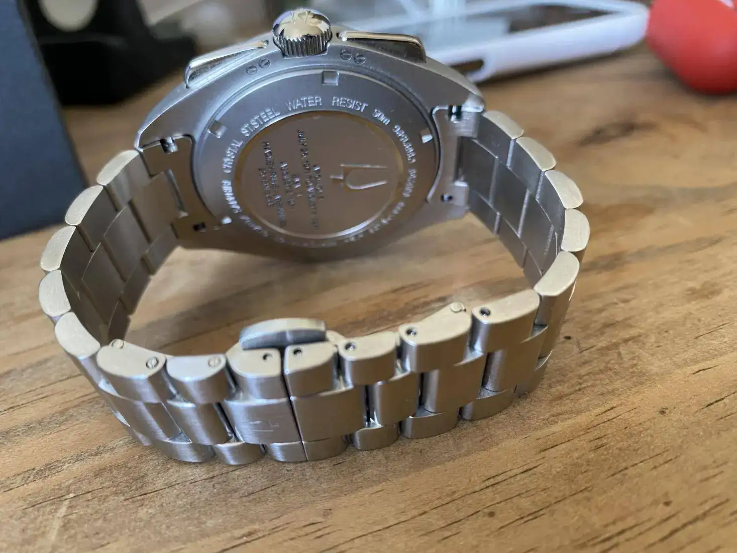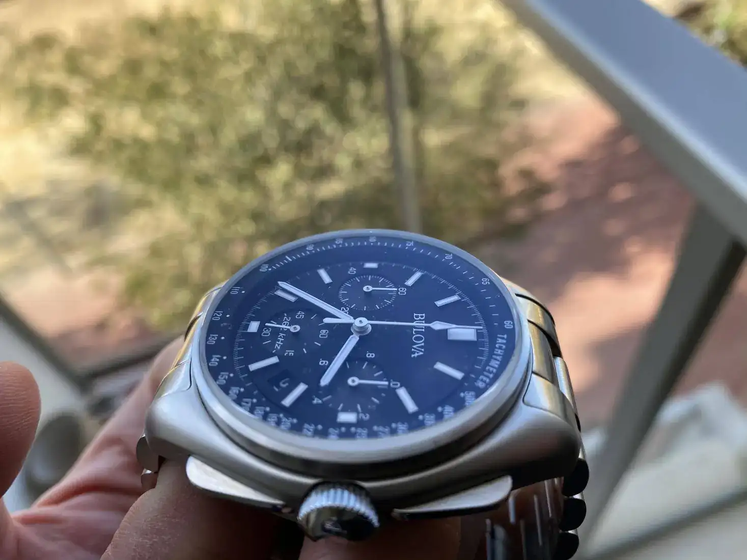 En esta ocasión sacó este archiconocido Bulova Lunar Pilot, una pieza de colección y con mucha historia detrás además de ser una compra maestra para quien lo aprecie, por historia, calidad, precio y estética. El reloj es de marzo de este año, con mucha garantía aún y perfecto funcionamiento. Está como nuevo, sin apenas uso, apenas tendrá 3-4 puestas y varios cambios de correa para ver cómo queda. No tiene golpes o marcas, sólo en la trasera de las asas por el cambio de correa y algún pelillo quizás en el armis, diría que está en un estado de 9,9/10.