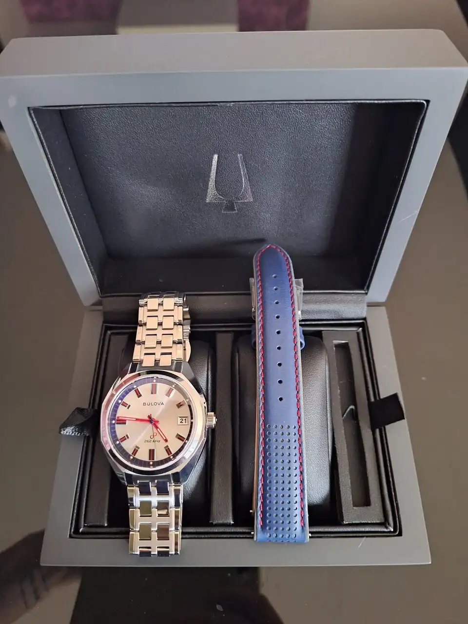 Decir que estaba detrás de un Bulova desde hace tiempo, y que me decidí por éste por sus 40mm de caja y porque me parecía diferente y de colores alegres ya que tengo otros con esfera negra. Además, viene con una correa adicional azul con pespuntes rojos que le queda de cine. También resaltar que gana mucho en vivo. Ahí van unas fotos, espero que os guste. Un saludo a todos!