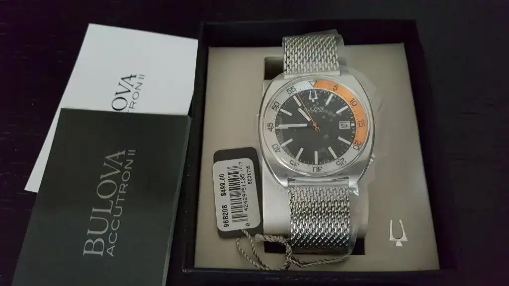 Buenos días, pongo a la venta Bulova Snorkel Accutron II 96B208 reloj diver 200M Cuarzo 2016. NUEVO. Por estrenar. Con todos sus plásticos protectores.