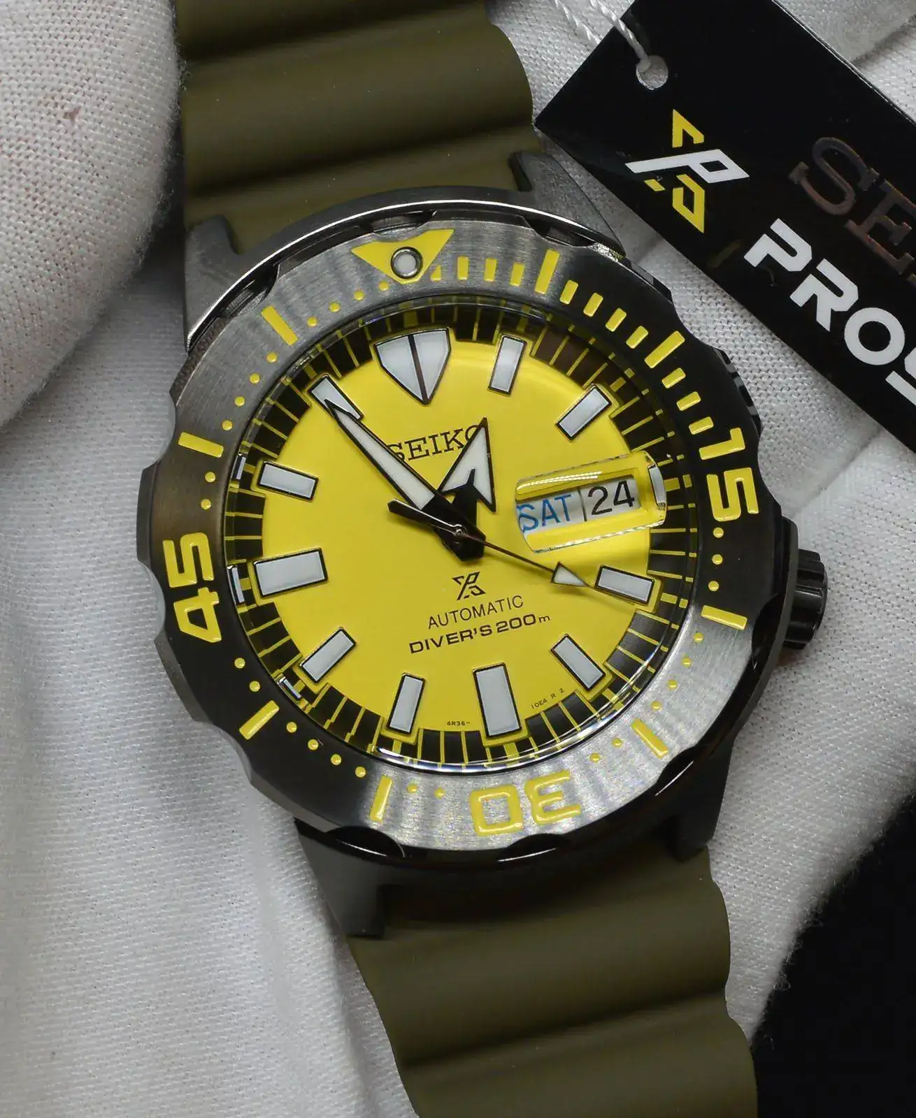 Seiko Yellow Monster Asia Special Edition SRPF35K1 nuevo a estrenar , con sus plásticos protectores.