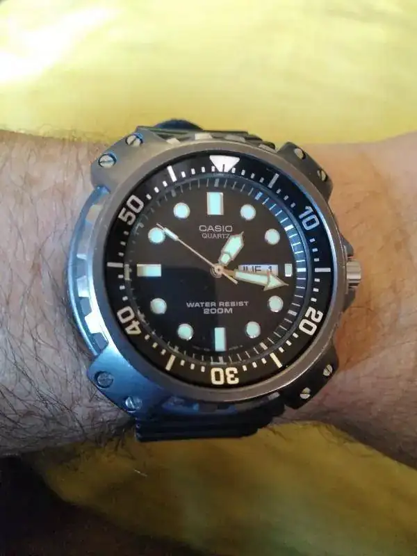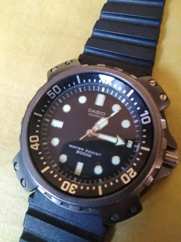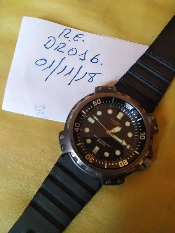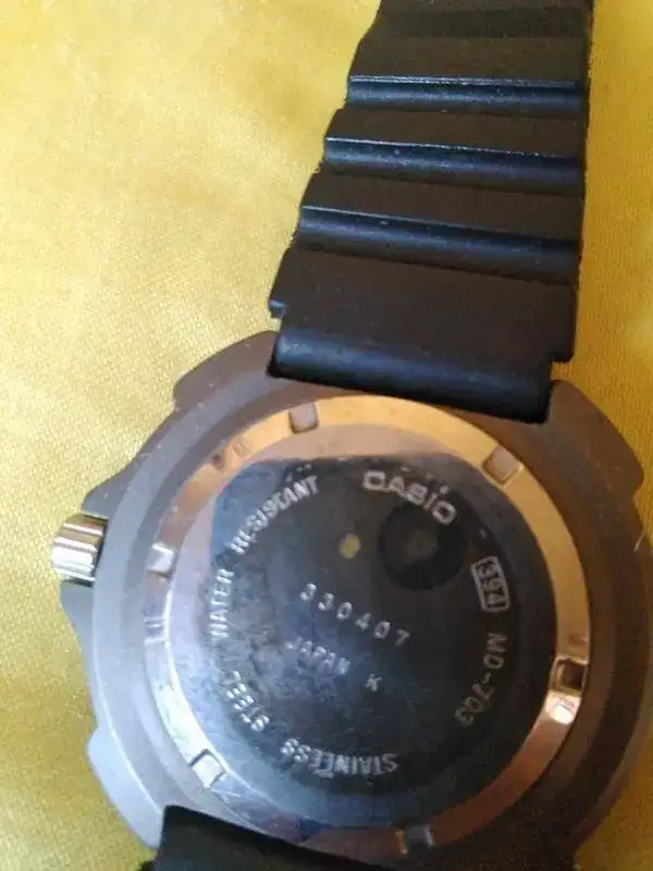 Ofrezco este interesante y escaso Casio MD-703 tuna de titanio y 200m, según indica en la esfera, pero no se ha comprobado, ni se ha hecho prueba de estanqueidad ( un reloj como este, yo ni me he lavado las manos con él, por si acaso). Funciona todo bien, hasta el cambio rápido de fecha y día de la semana.