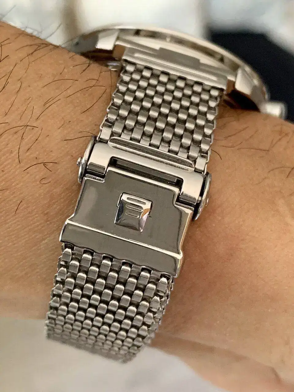 En segundo lugar casi todos mis relojes (más de 50) llevan brazalete. Para mi es una condición imprescindible, y no lo cambio jamás. Soy un enemigo acérrimo del cambio de correas, porque veo con demasiada frecuencia las carnicerías que muchos perpetran en las cajas…