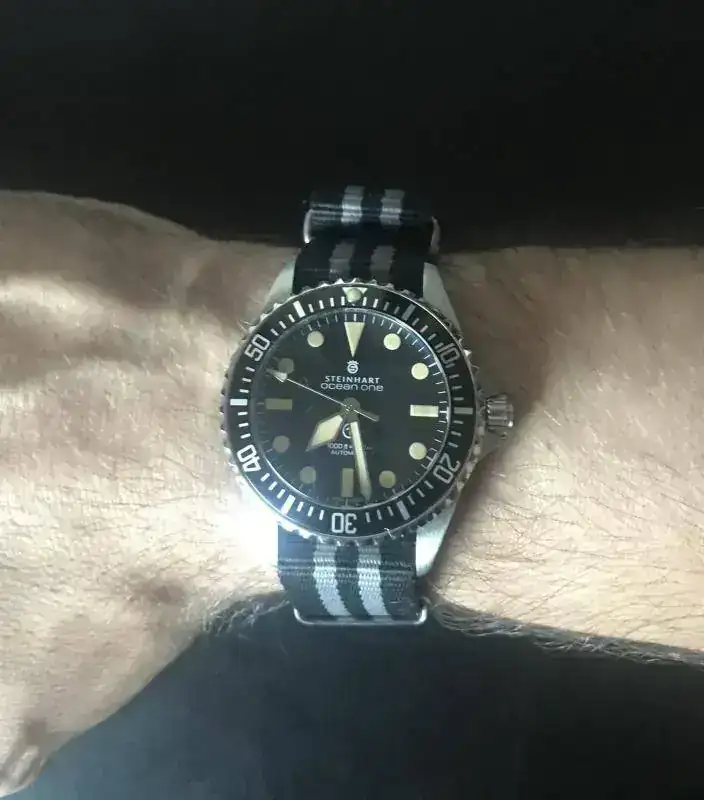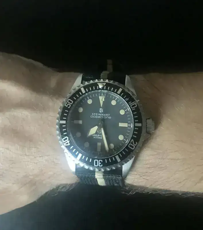 Ese es mi Steinhart de 42 mm en mi muñeca de 18 cm.