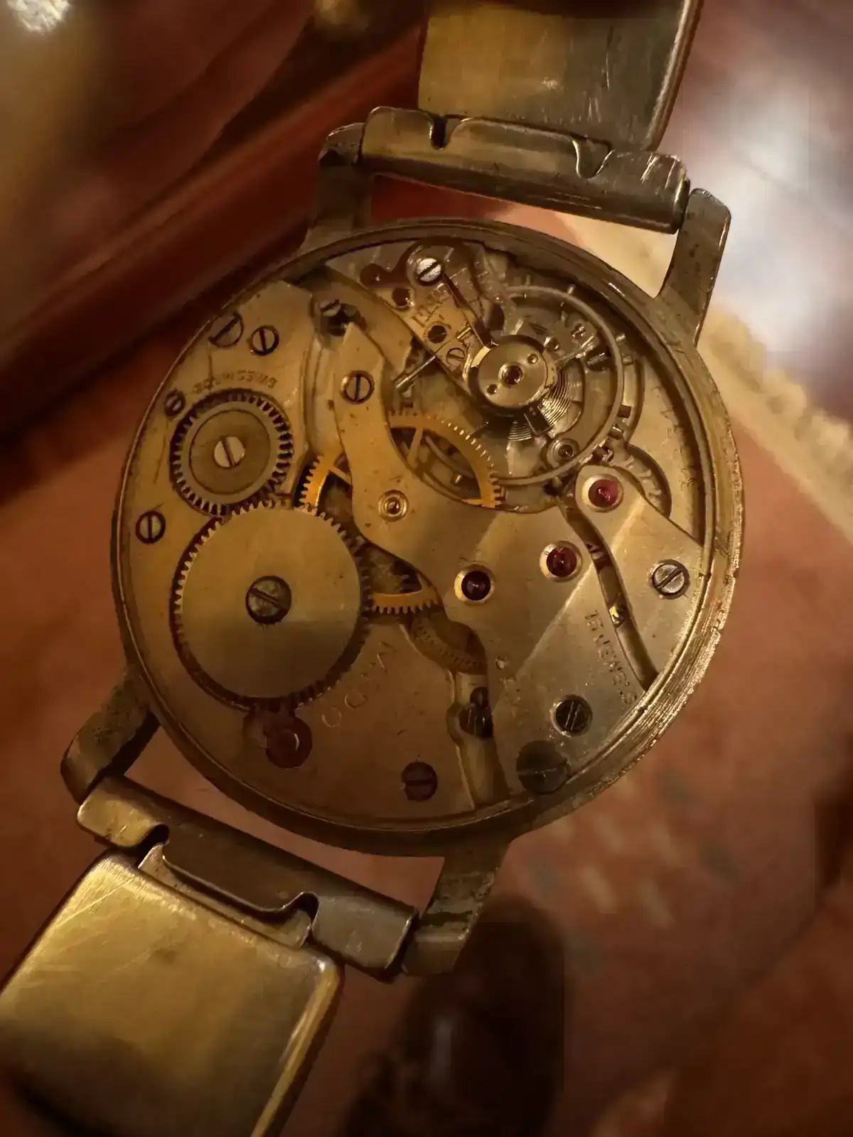 Un Mido que le falta la corona y que no sé qué modelo es. La correa es metálica extensible: