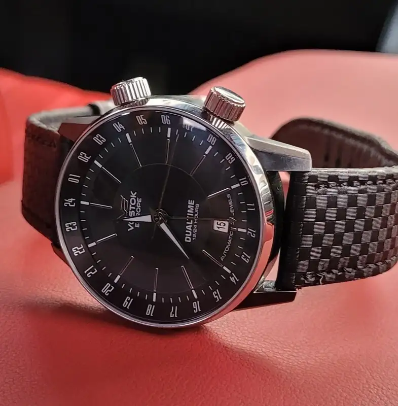 La complicación de GMT es una de mis favoritas (pero no porque la use, sino porque me gusta el diseño de este tipo de relojes ). Tengo 2 más..., no te los aconsejé porque mi Vostok Europa GMT GAZ-14 LIMOUSINE también está descontinuado y creo que los Rusos no están en tu radar y mi Alpiner GMT de Alpina es de Cuarzo (pero me encanta)