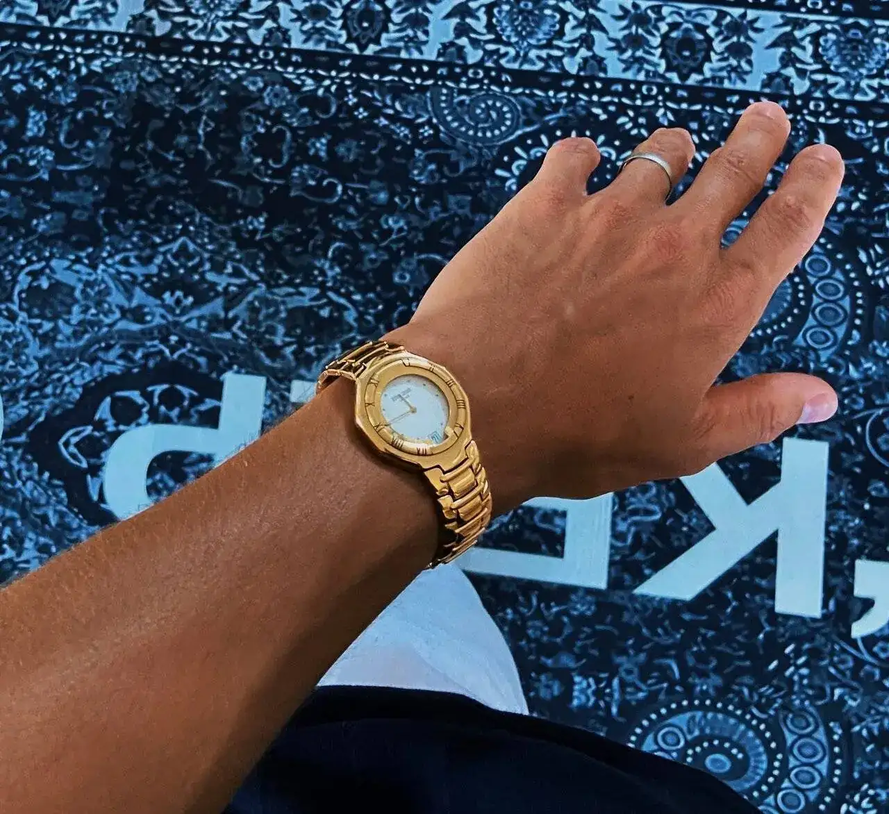 • Características generales: reloj de cuarzo de los años 70, en acero chapado en oro de 18kt.
