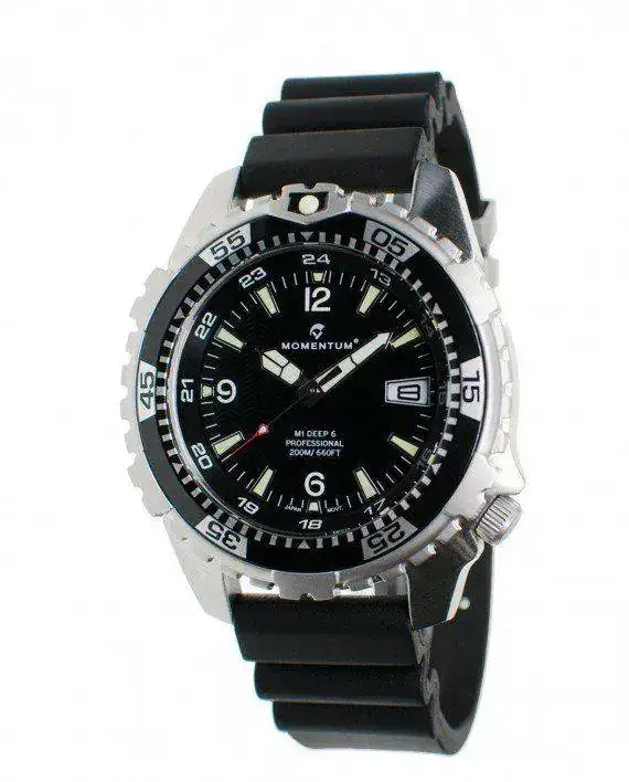 Esfera: Negra; manecillas y marcadores en blanco luminiscentes; calendario a las 4:15.