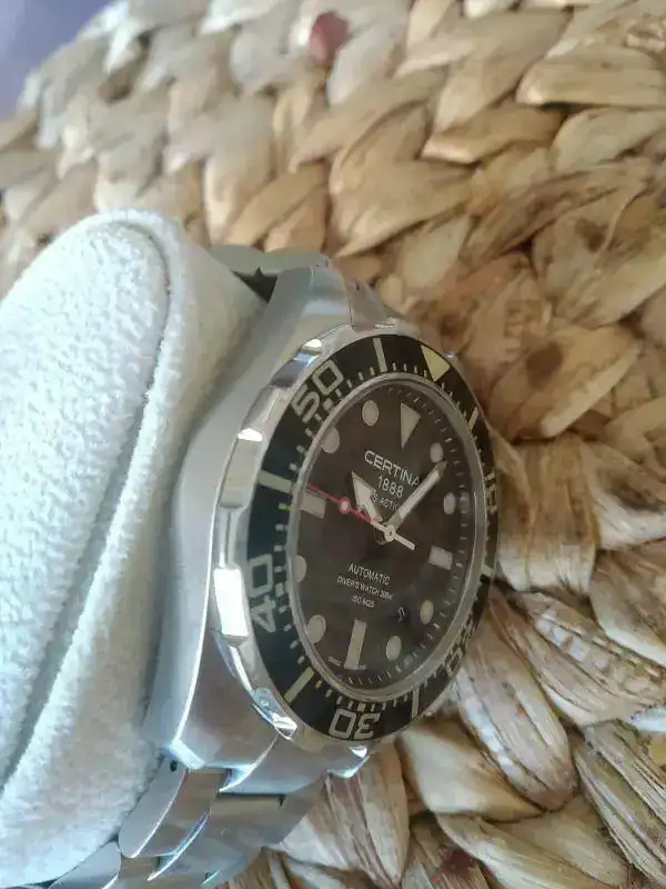 Mi primer reloj fue un Certina Ds Action automático. Han pasado cinco años desde que lo compré y está como nuevo (quitando que el bisel amarillea, hay a gente que le molesta, a mí me parece que le da un toque vintage, aunque sí que es cierto que debería tardar más en tener ese defecto). Te paso algunas fotos para que veas la calidad que tiene, lo puedes conseguir con un buen descuento por poco más de 500 euros. El reloj es muy resistente, yo he hecho de todo con el, actividades, montaña, playa...